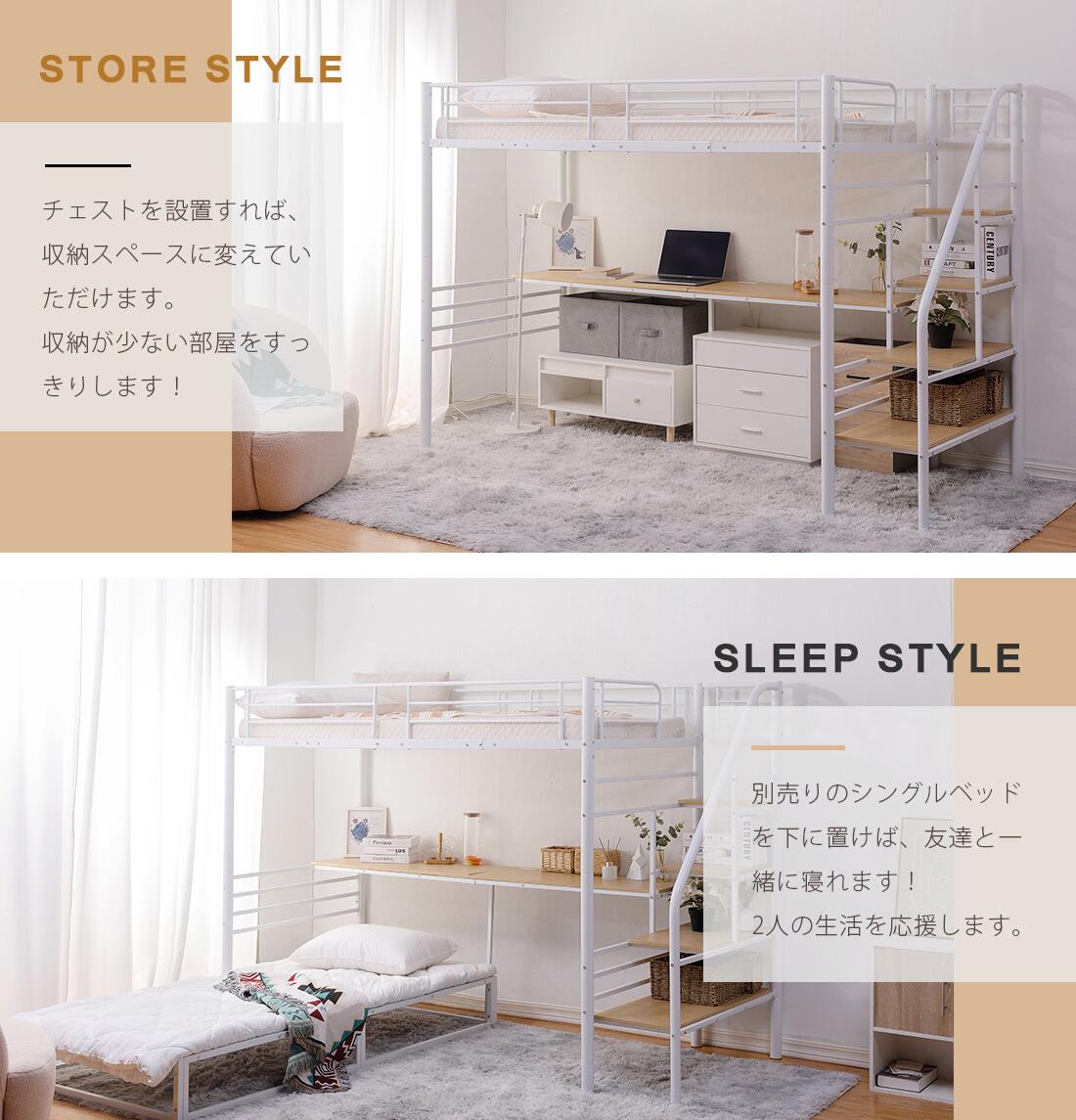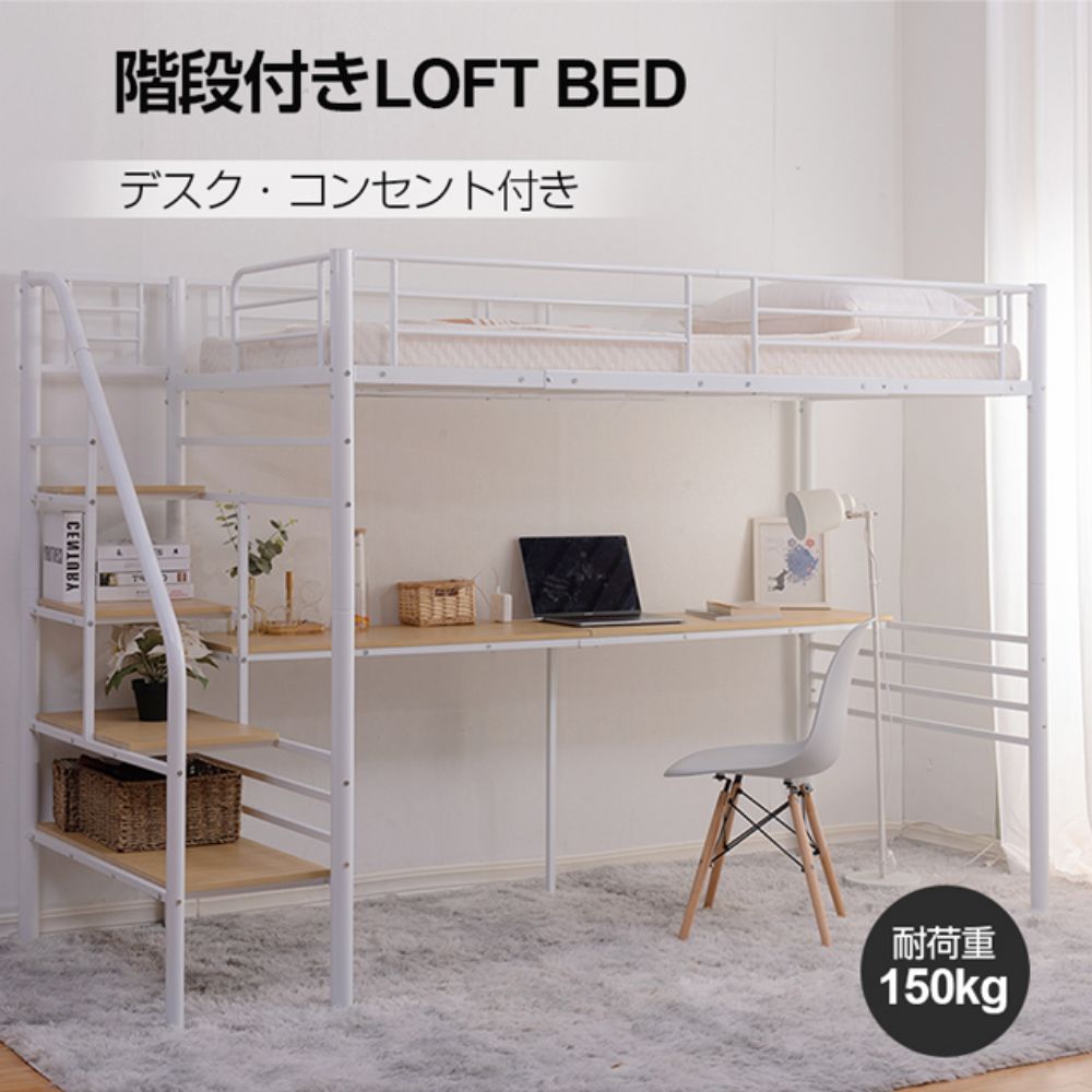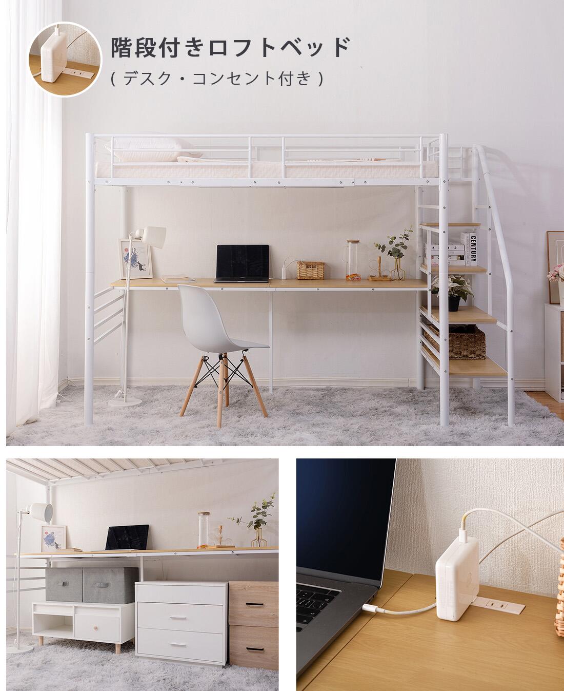ロフトベッド 階段付き パイプベッド ブラック ホワイト