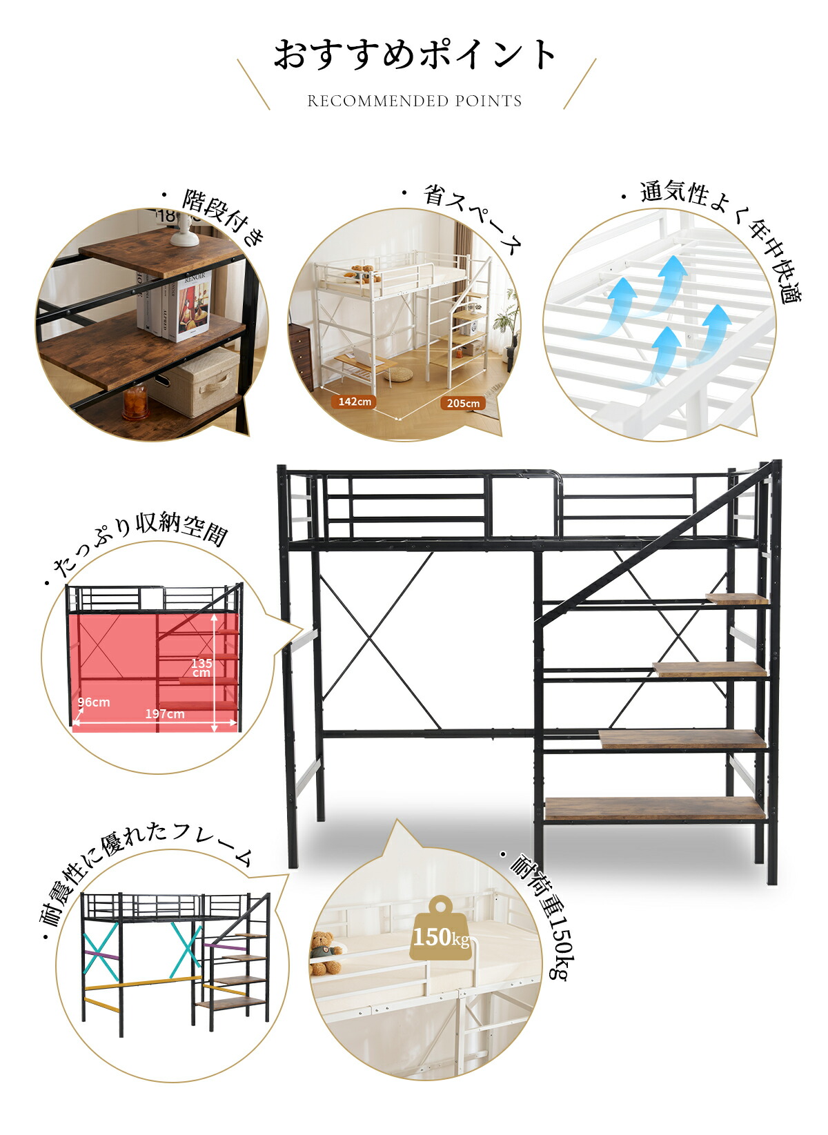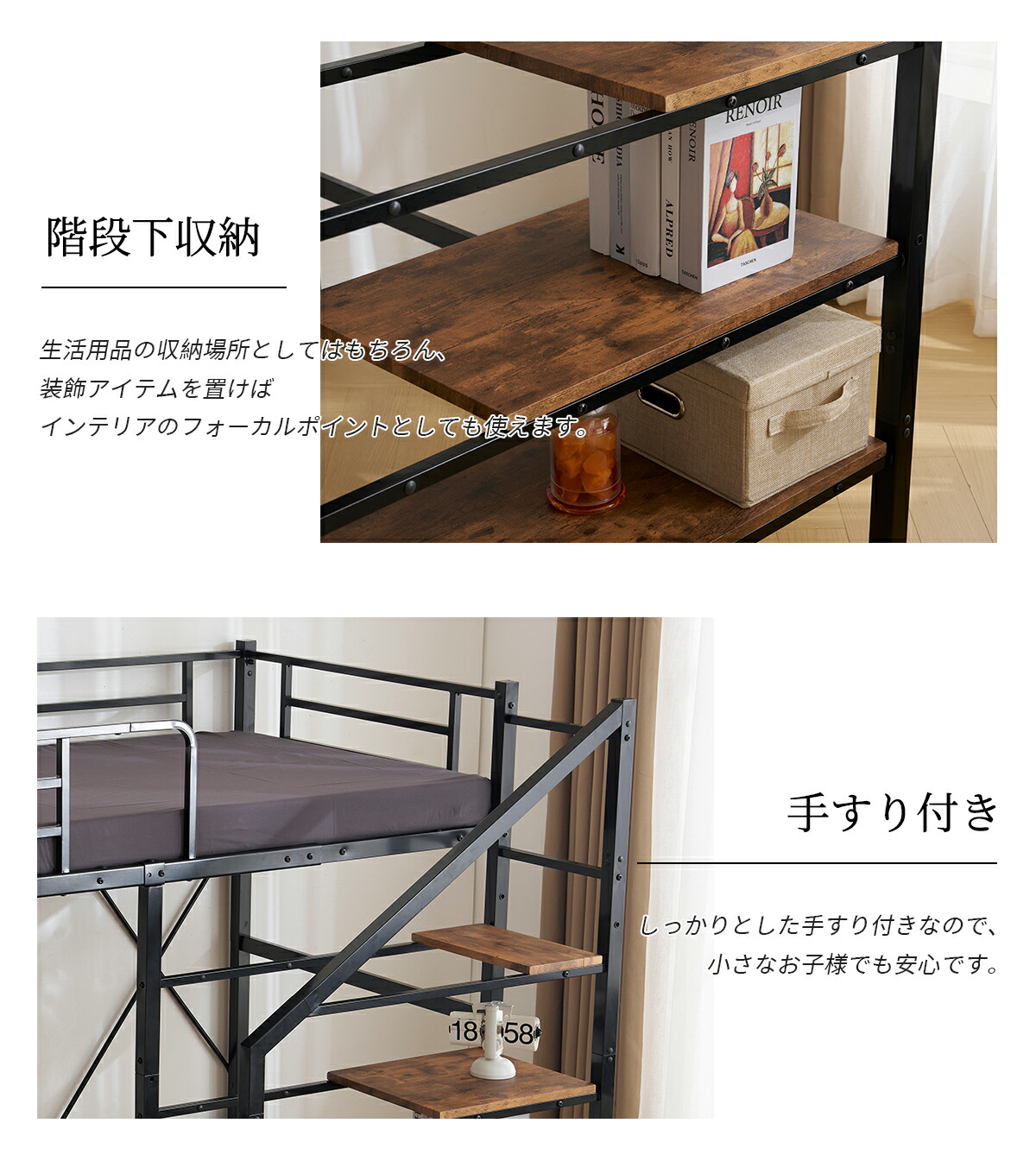 ロフトベッド 階段式 システムベッド ブラック ホワイト