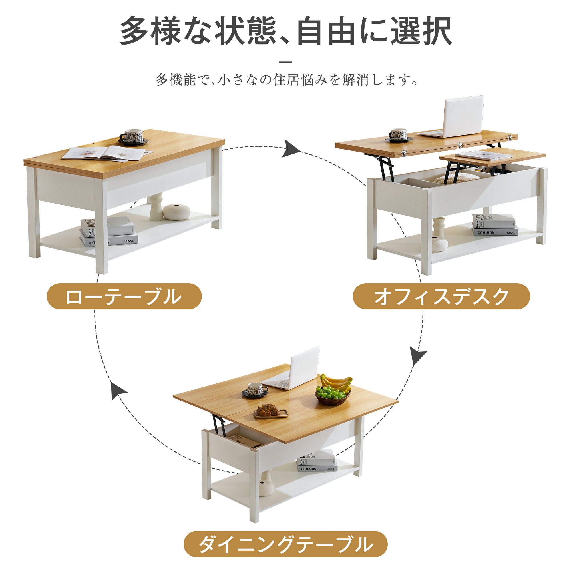 昇降テーブル リフティングテーブル 木 ブラック グレー ブラウン ナチュラル