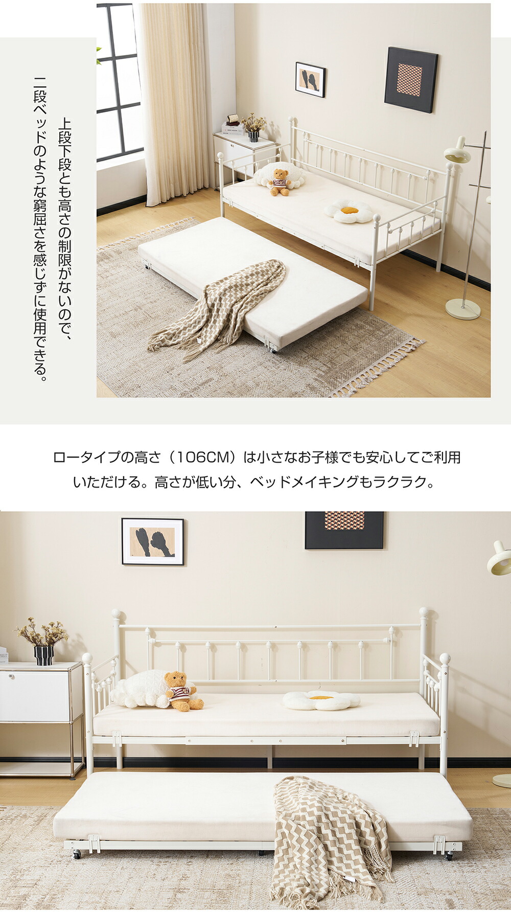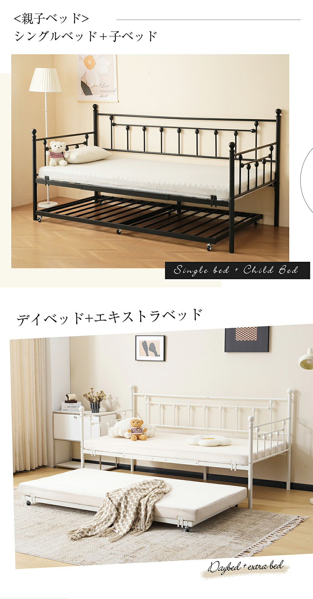 親子ベッド 二段ベッド 多段ベッド シングル ベッド パイプベッド ホワイト ブラック シンプル 木 ウッド調 おしゃれ 子供部屋 寮 北欧風