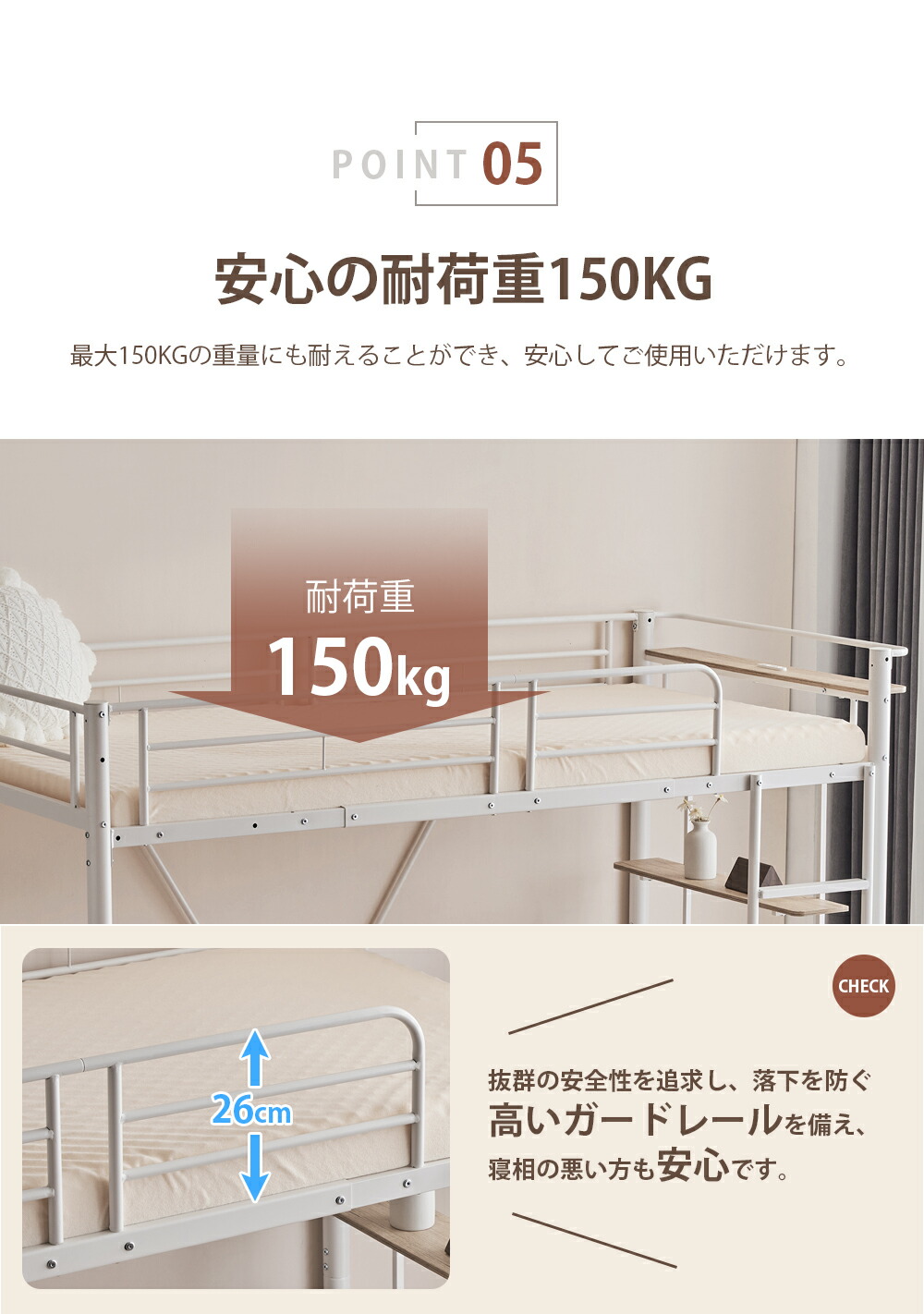 ロフトベッド パイプベッド シングル ホワイト ブラック