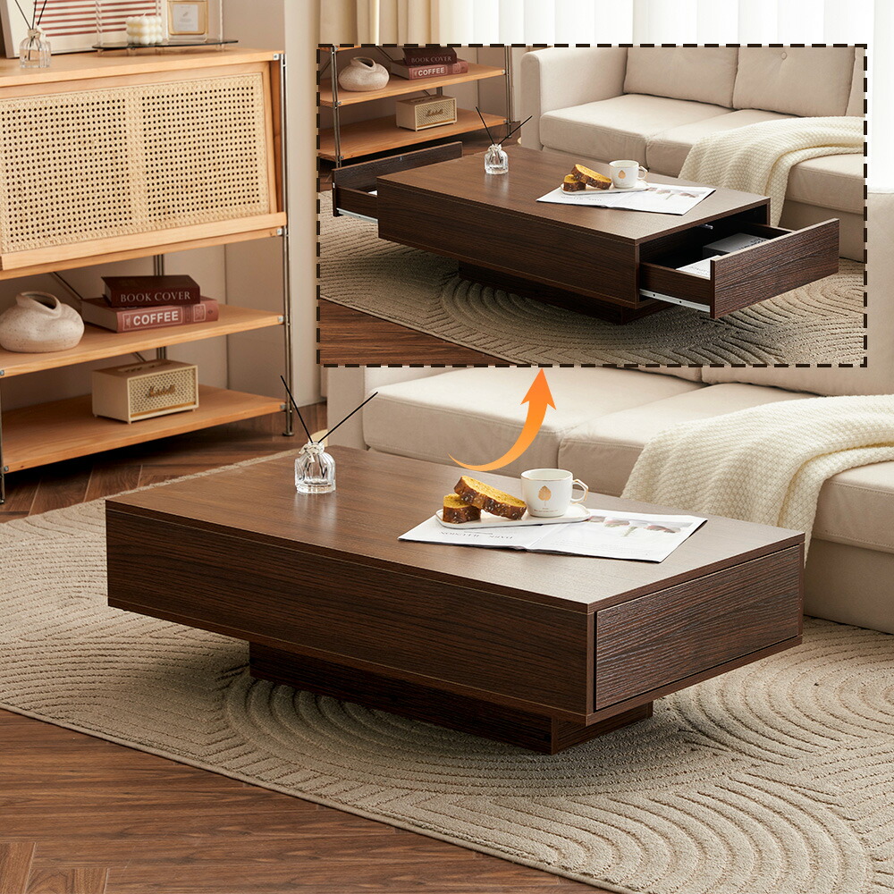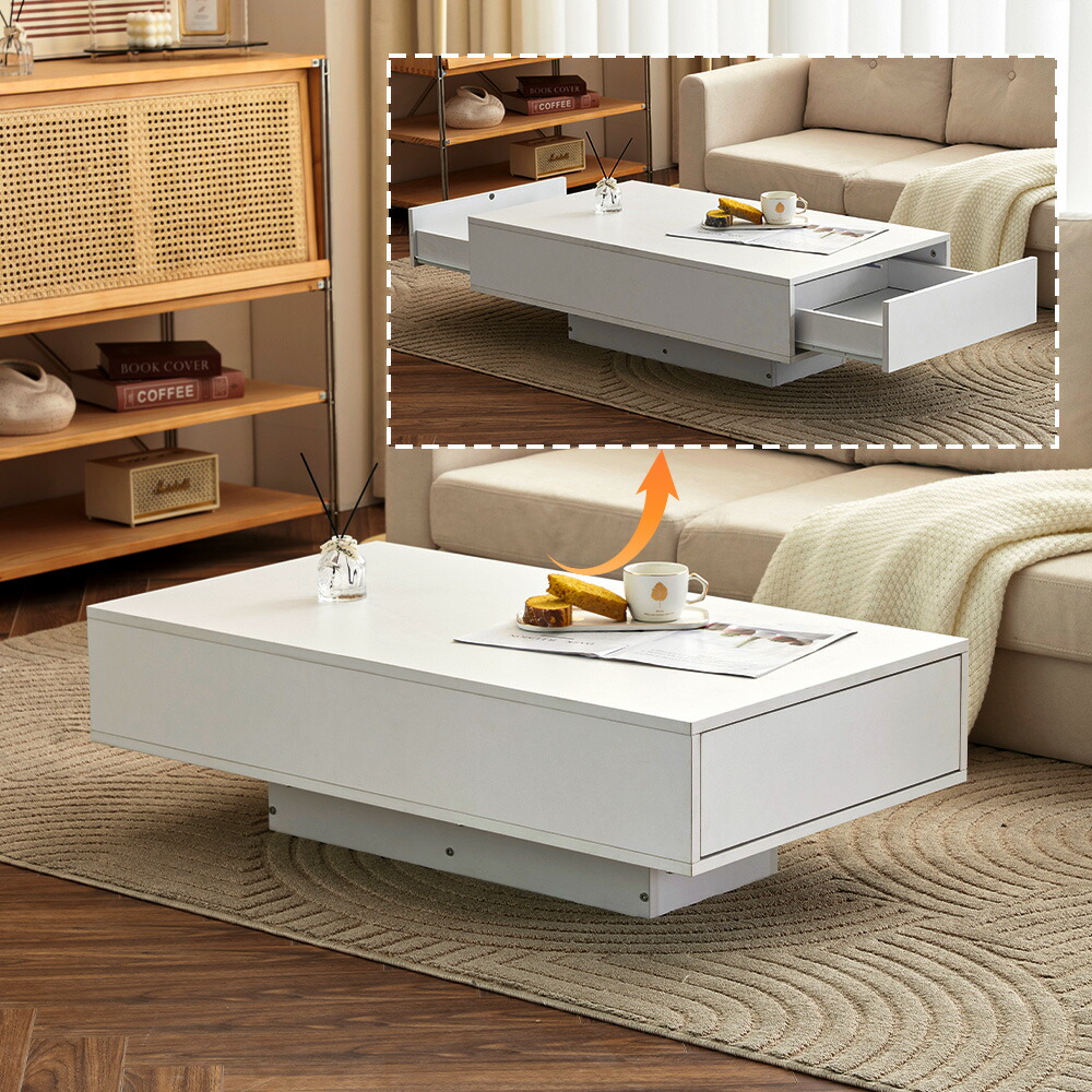 センターテーブル 引き出し2杯 収納 ブラウン ホワイト