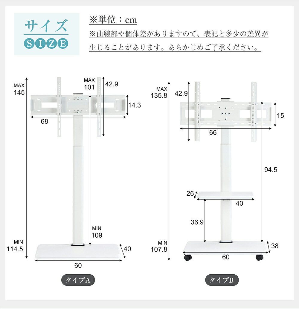 テレビスタンド キャスターなし 壁寄せ タイプA タイプB ナチュラル ホワイト