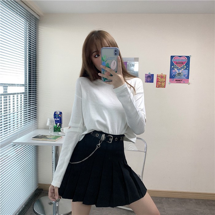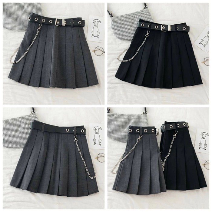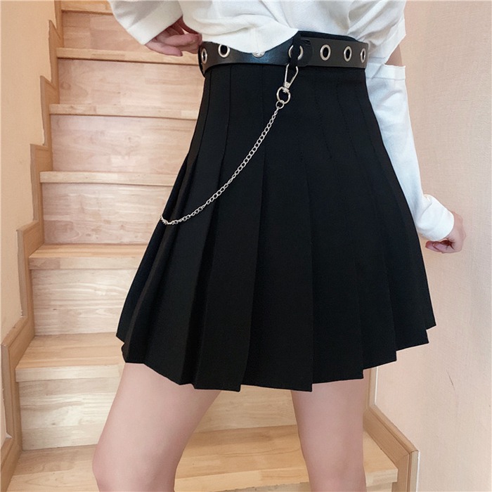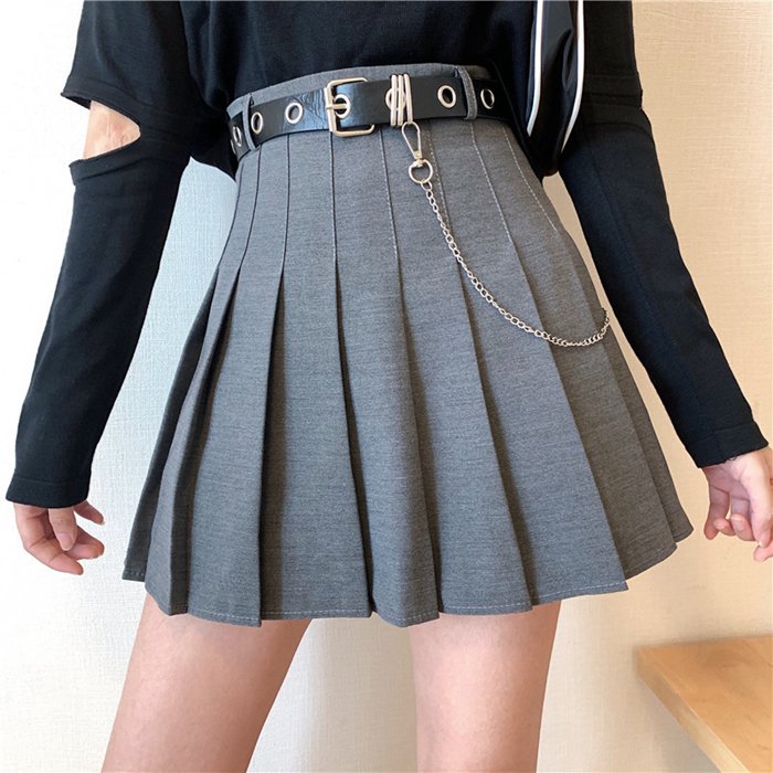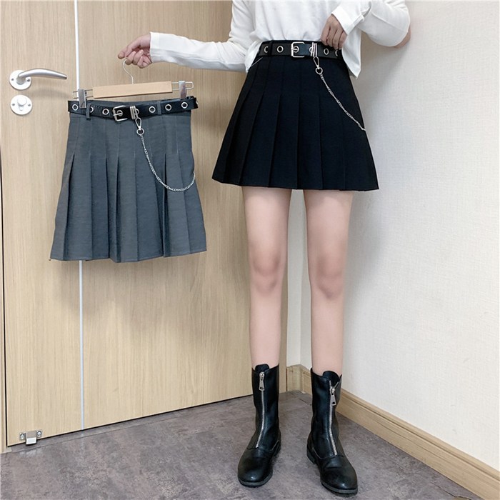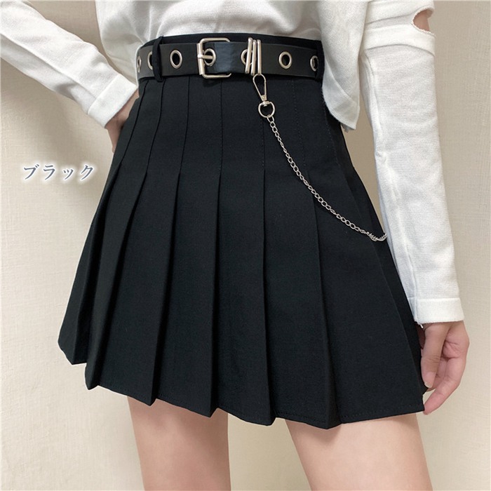 チェーン付き プリーツスカート ベルト レディースファッション 人気 ブラック グレー S M L XL XXL