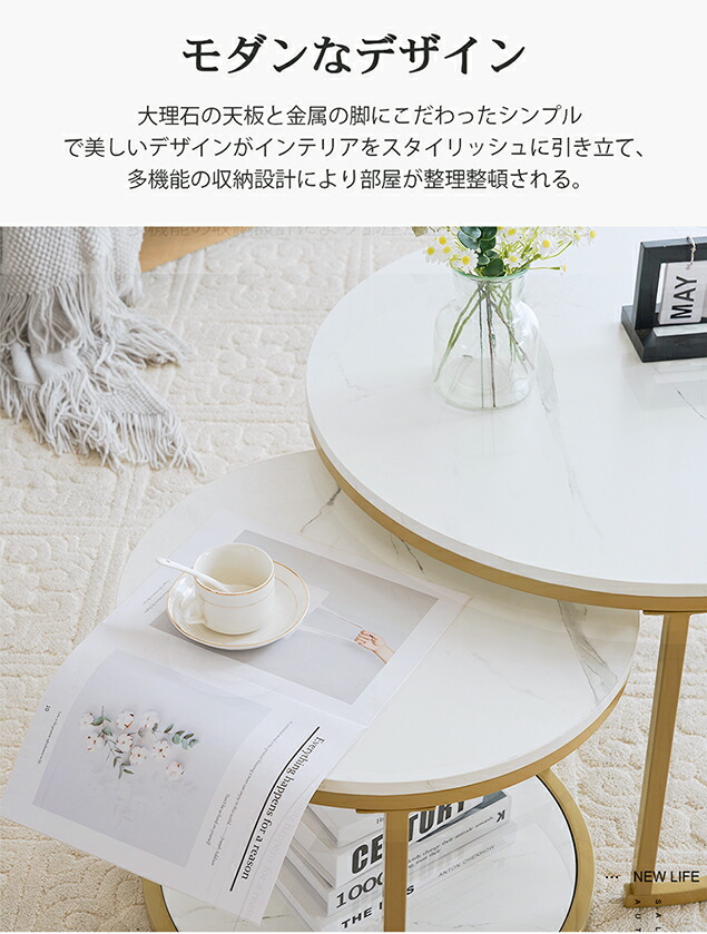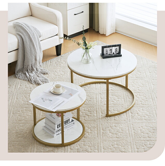 ネストテーブル 大理石 ローテーブル ホワイト グレー