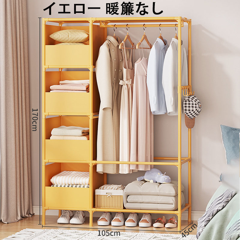 ワードローブ クローゼット ハンガーラ ホワイト ブラック イエロー グレー 暖簾なし 暖簾付き