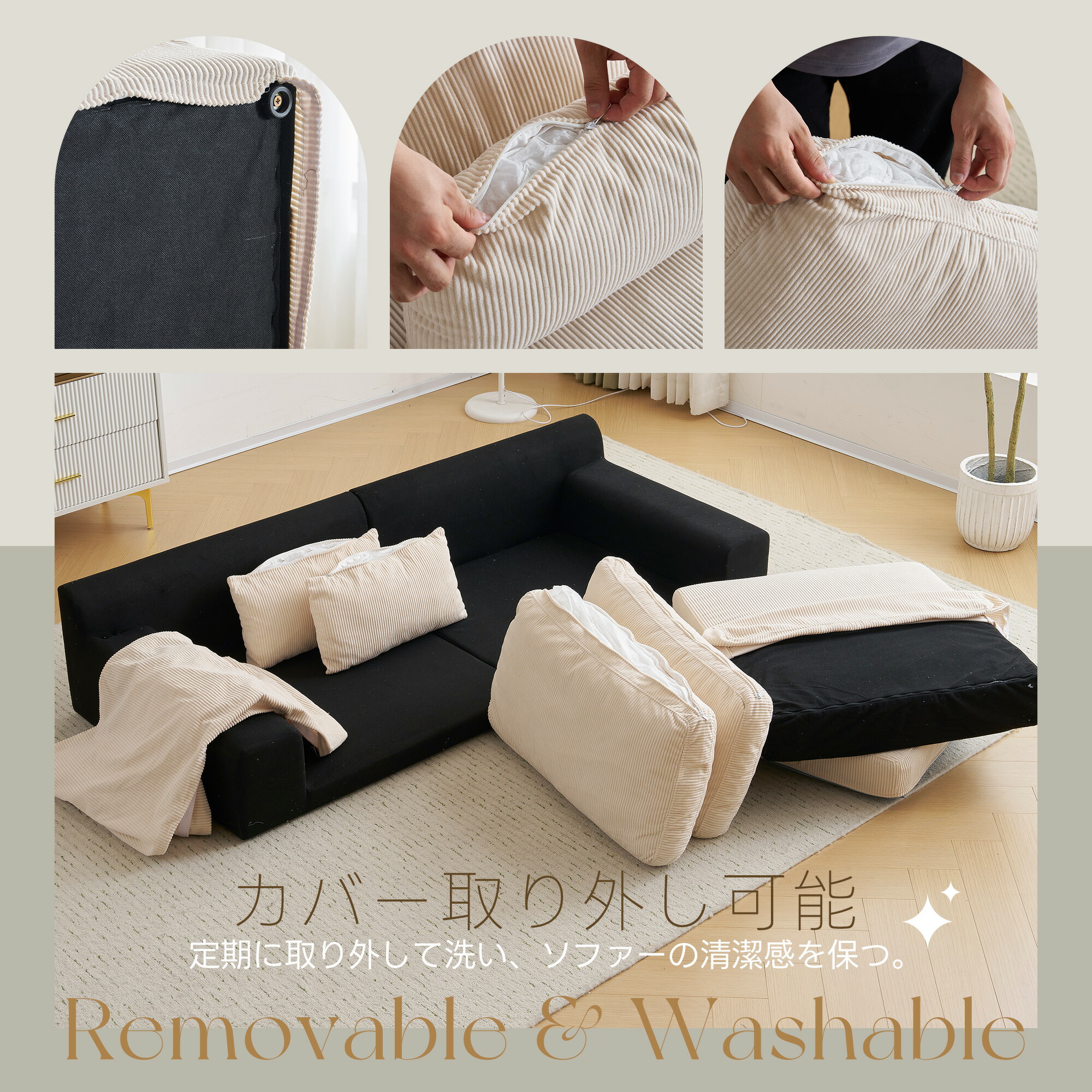 2人掛けソファベッド フロアソファ コ ベージュ グレー キャメル