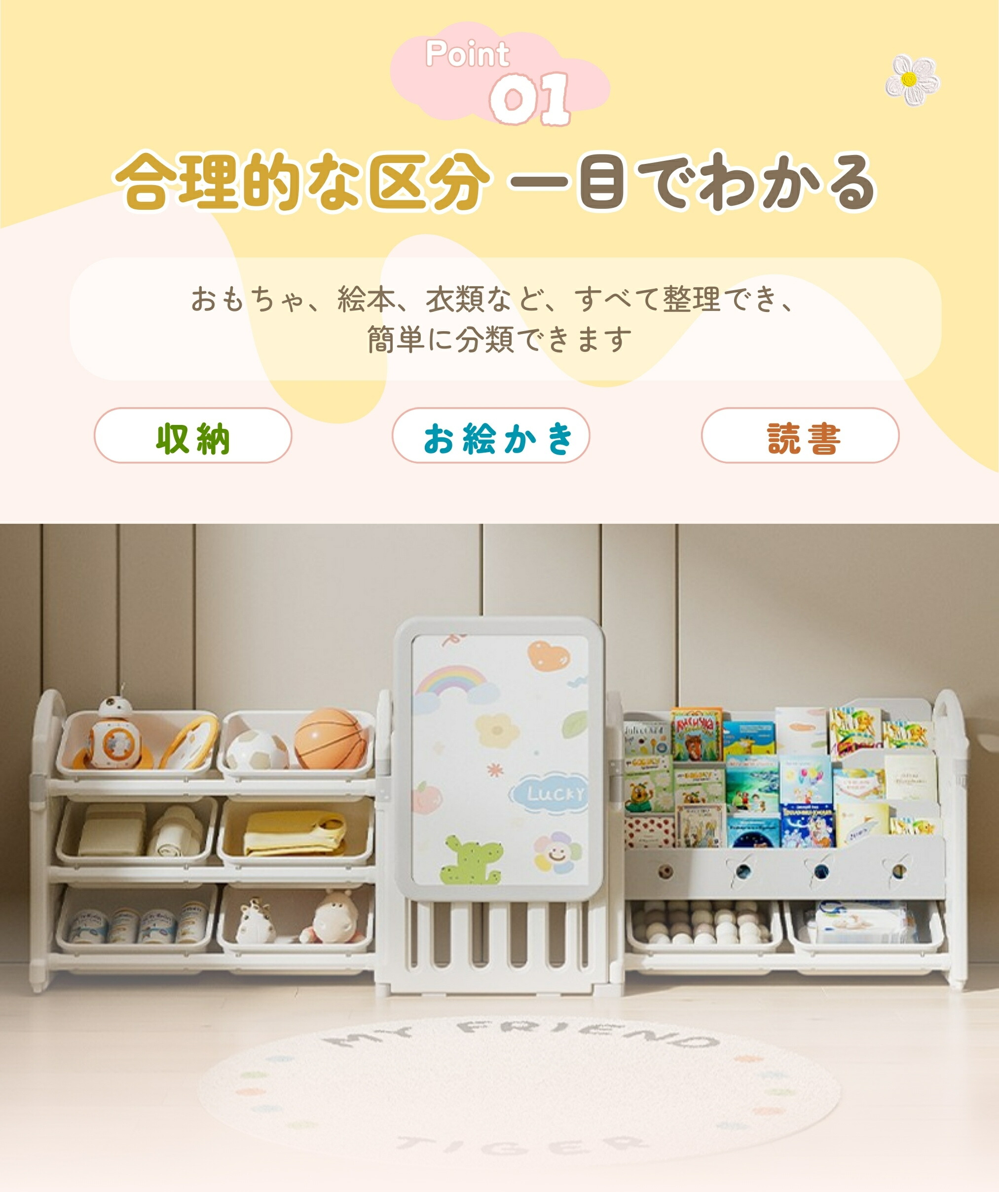 おもちゃ 収納 ラック 3段 4段 棚 おもちゃ箱 おもちゃ棚&絵本棚&描きボード 玩具箱 収納3段ラック 絵本棚 スリム おしゃれ ワイドタイプ 大容量 組立カンタン キッズ 入学 入 こども