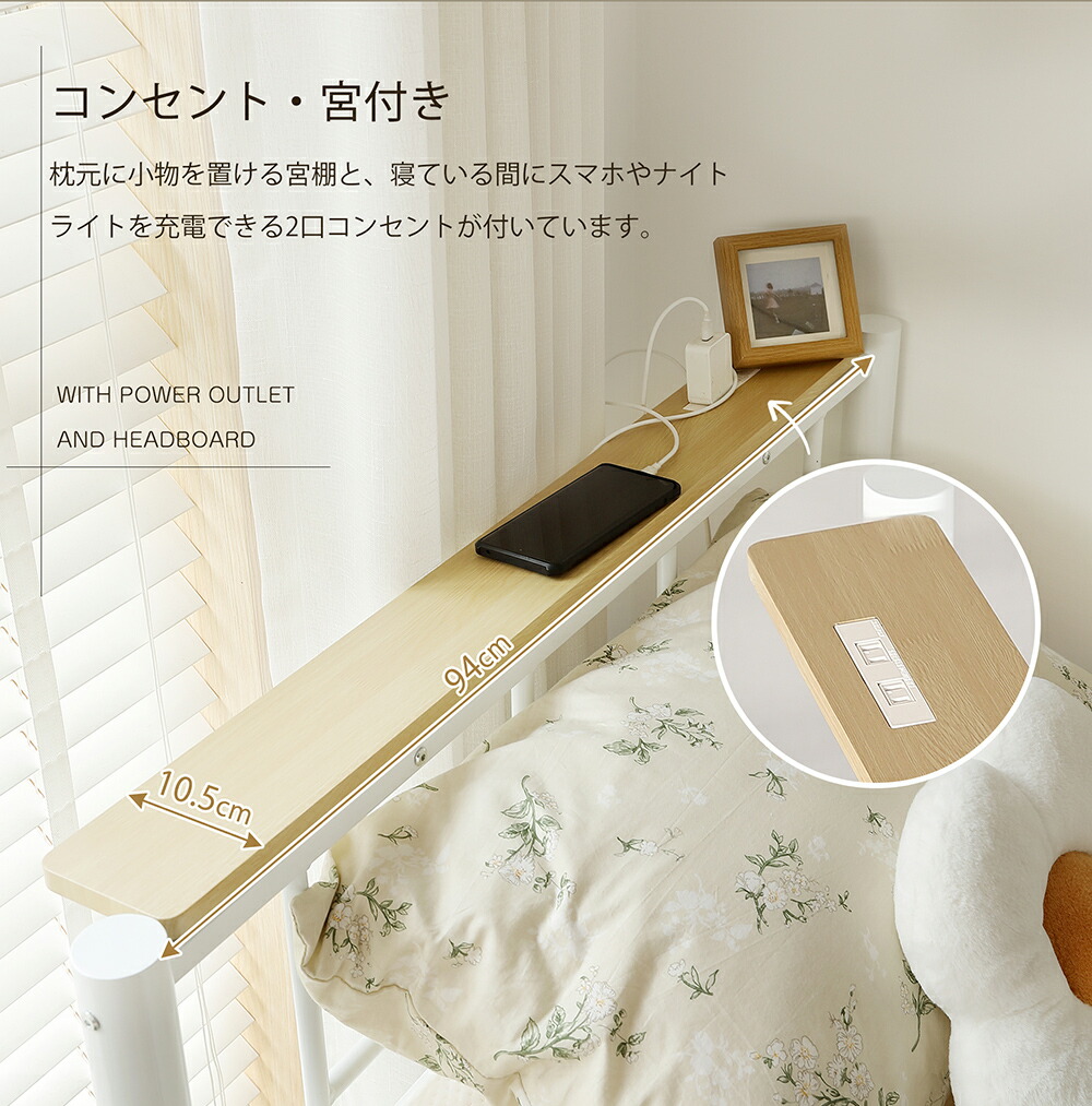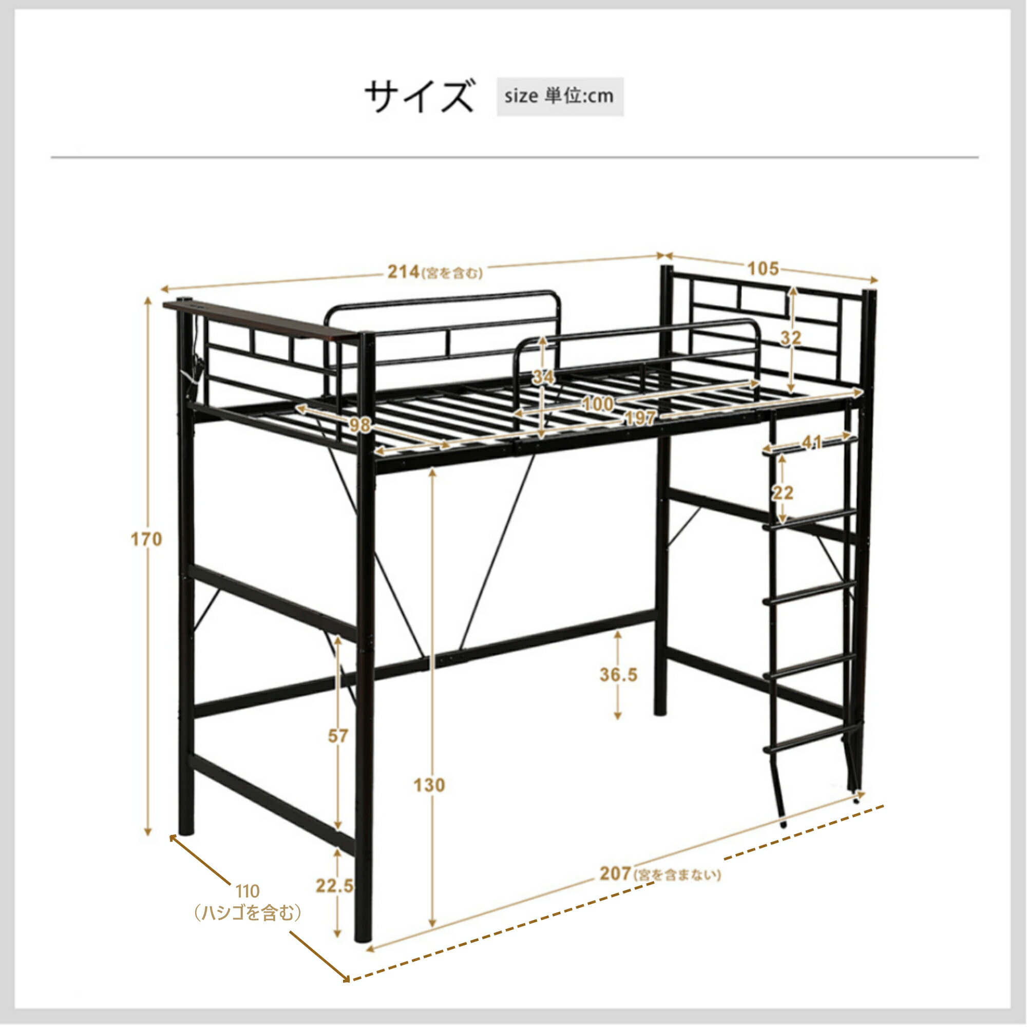 ロフトベッド コンセント付き パイプベ ブラック ホワイト