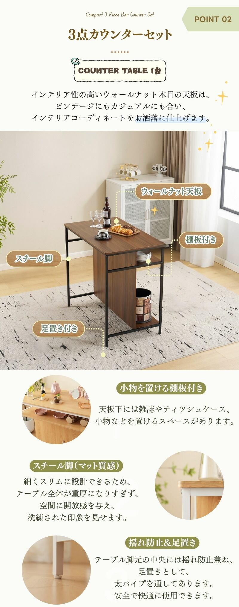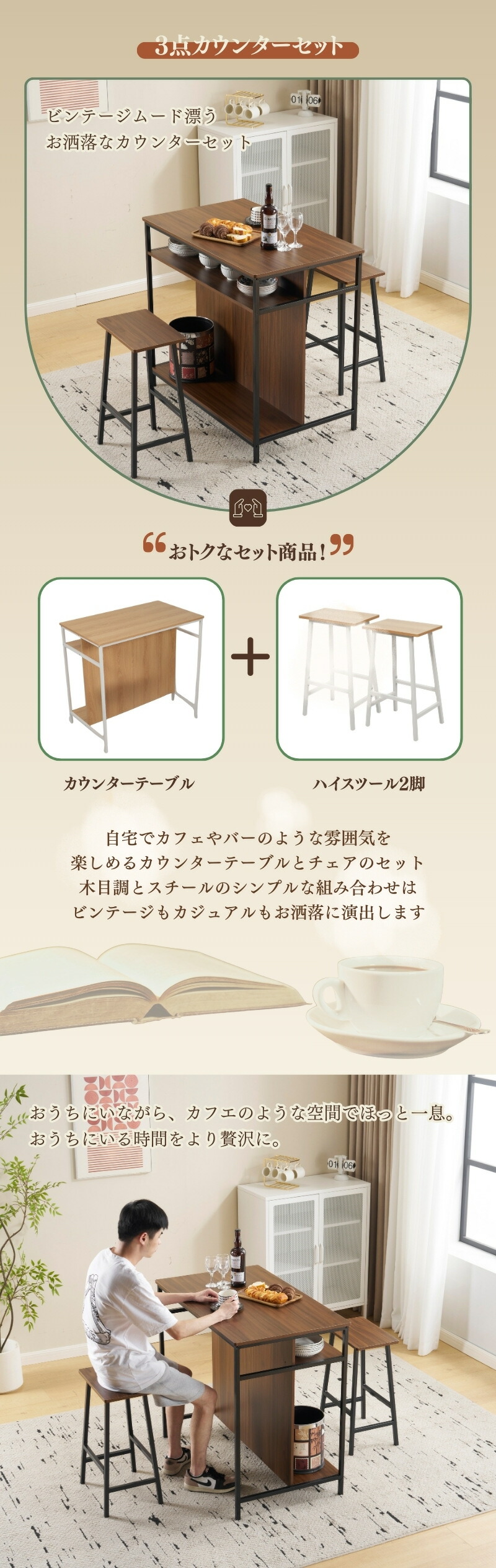 新発売カウンターテーブル スツール 3 ブラウン+ブラック ナチュラル+ホワイト