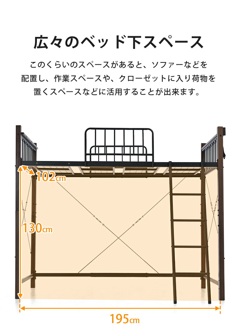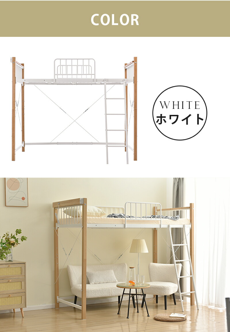 ロフトベッド パイプベッド シングル ブラック ホワイト ロータイプ(高さ130cm) ミドルタイプ(高さ140cm)
