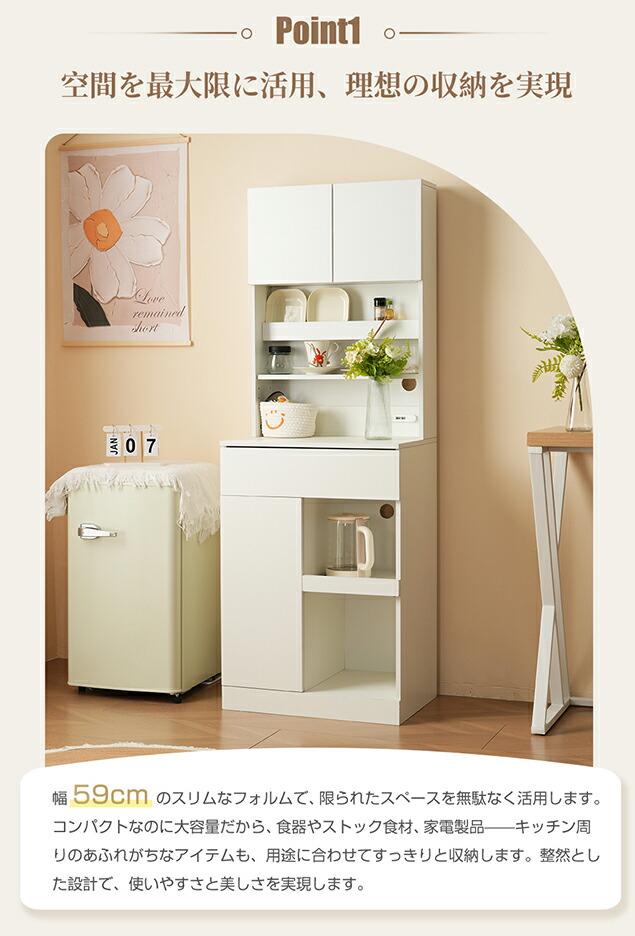 食器棚 キッチンボード レンジボード キッチン 収納 棚 家電収納 キッチン収納 一人暮らし スリム おしゃれ シンプル レンジ台 白 ゴミ箱 上 ベルーナ インテリア お オープン棚
