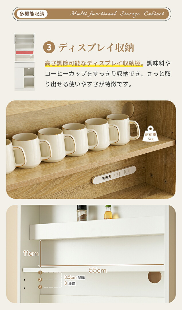 食器棚 キッチンボード レンジボード ホワイト ナチュラル