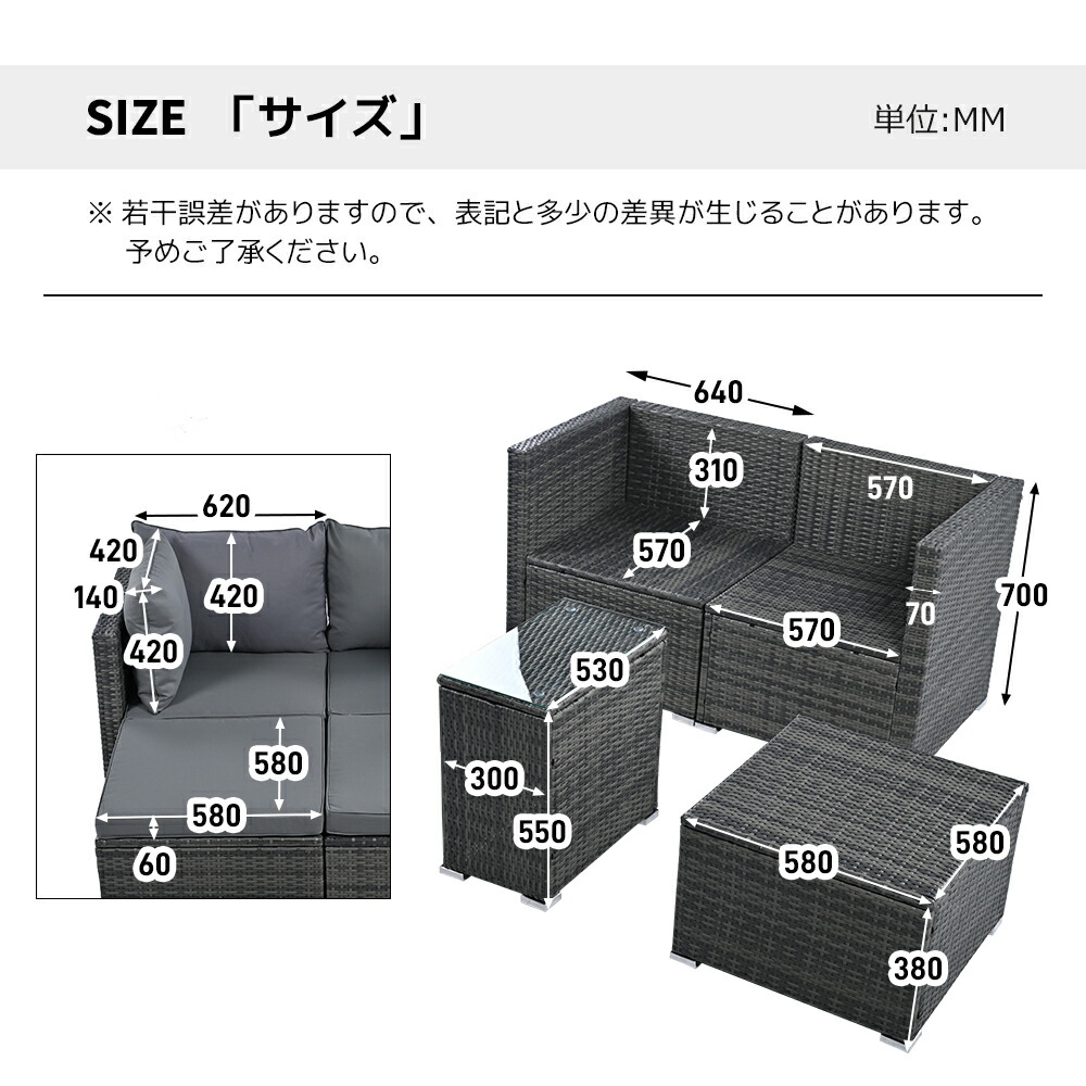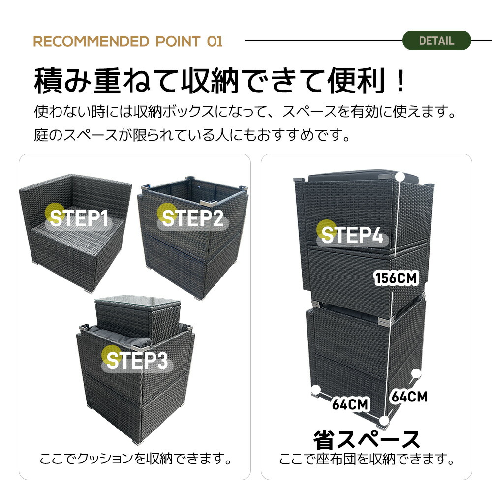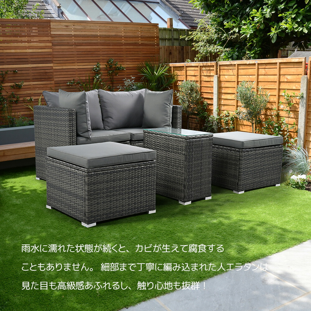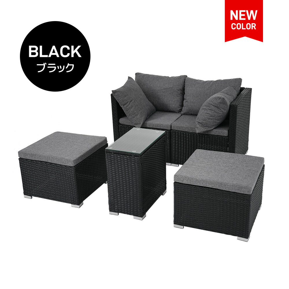 ラタン調 ガーデンファニチャー 5点 ブラック グレー