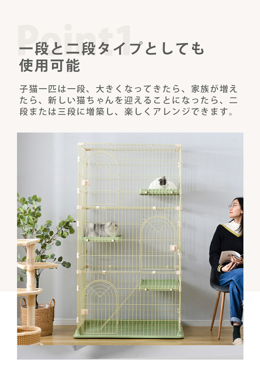 猫 ケージ キャットケージ 3段 M 猫用品 ケージ 特集 Mサイズ Lサイズ グリーン グレー ピンク ホワイト