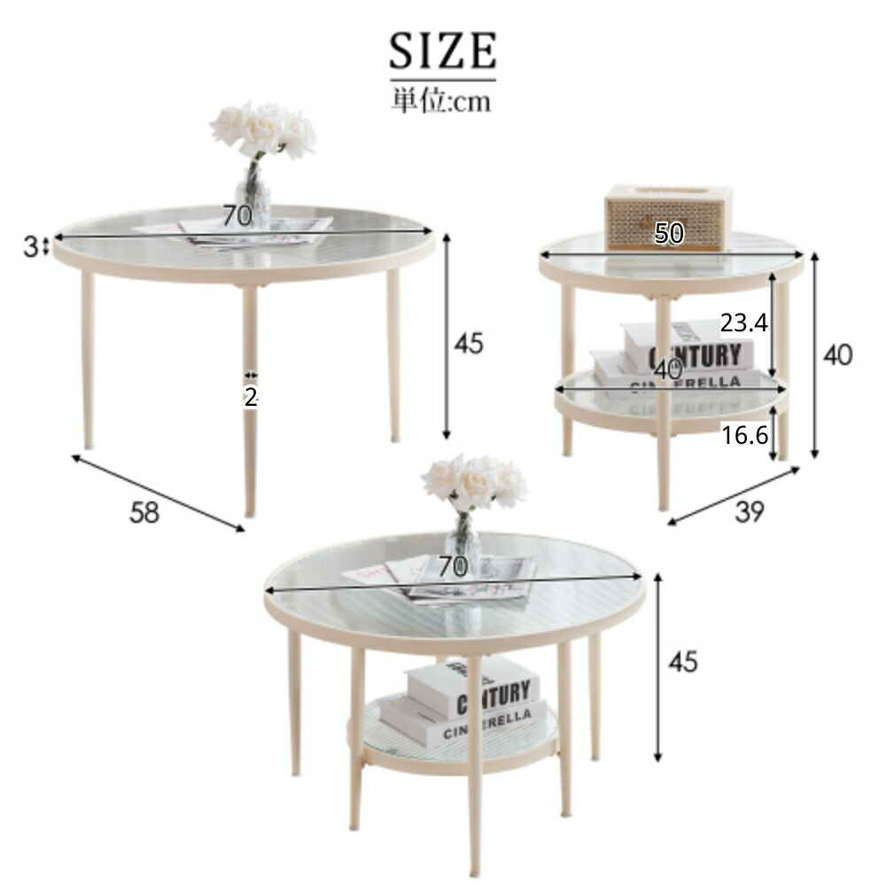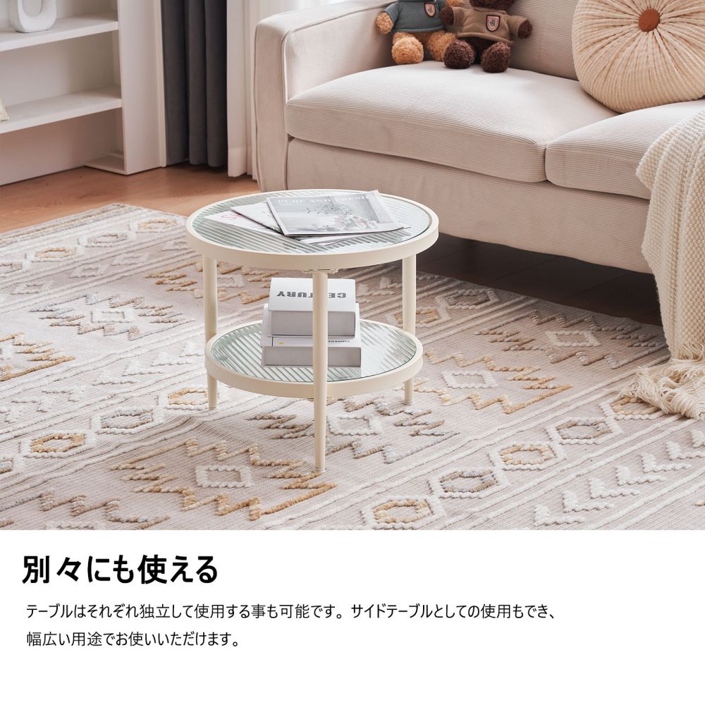 ネストテーブル ガラステーブル センタ 2点セント・幅70+45 単品・幅45 ホワイト ブラック