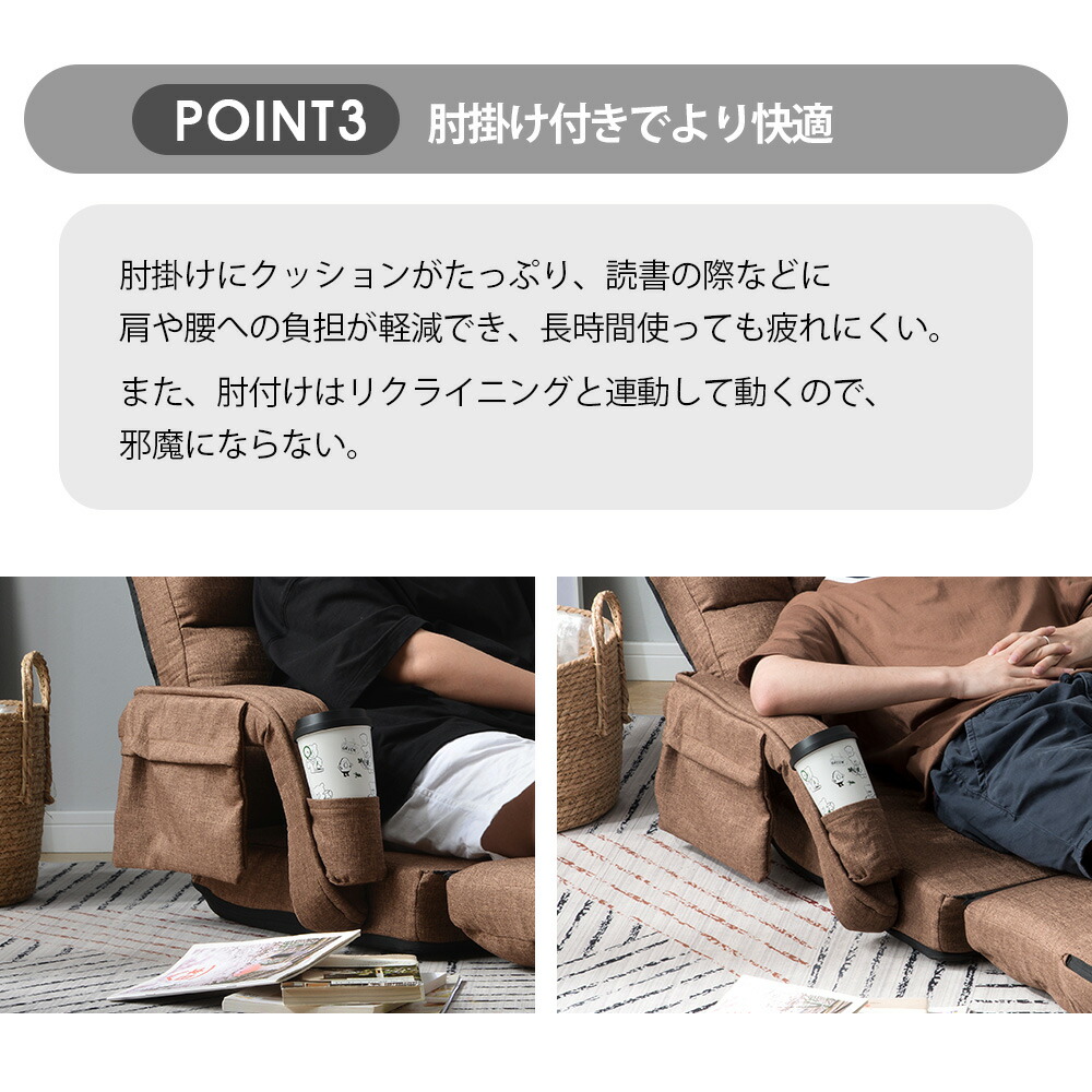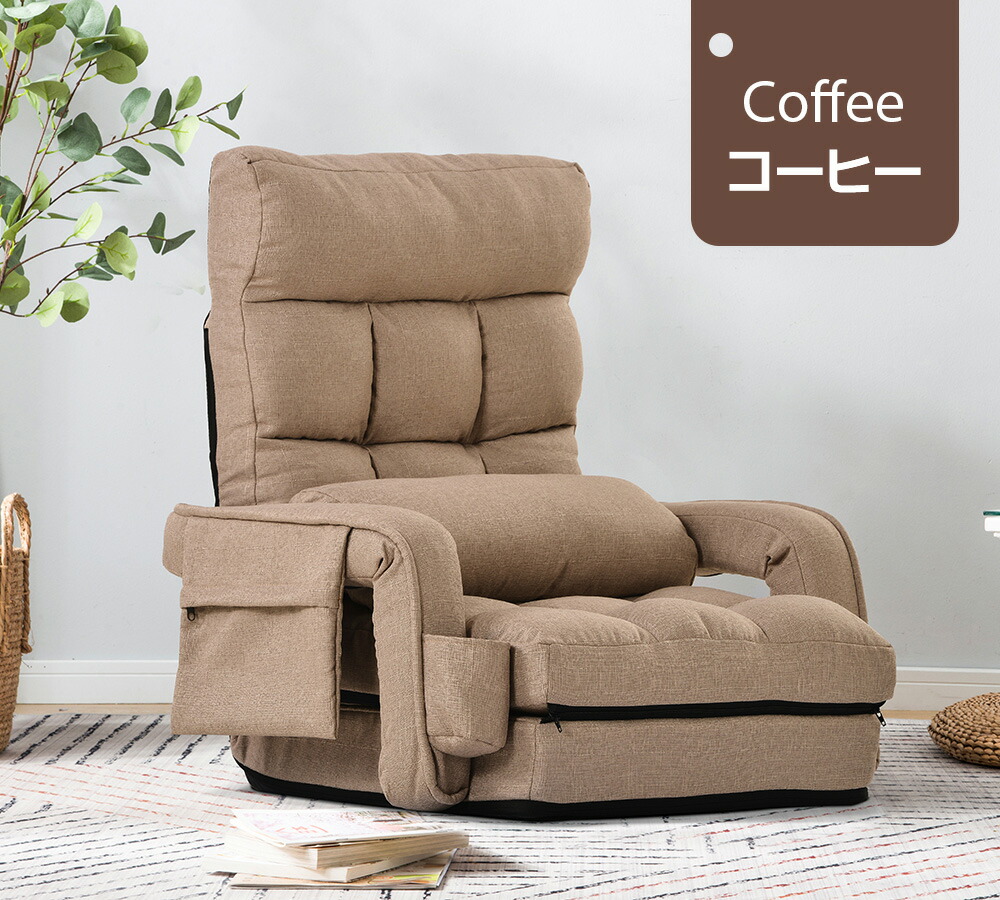 座椅子 肘掛け サイドポケット付き ハ ホワイト ブラウン ダークグレー ライトグレー ブルーグレー コーヒー