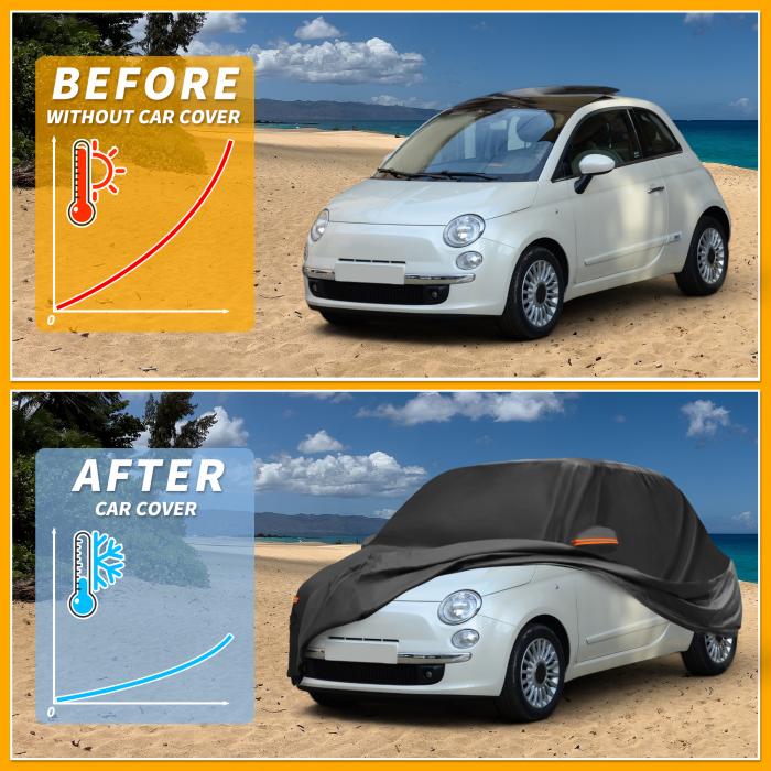 Partuto カーカバー 防水 オールウェザー 自動車用 アウトドア用 アンチUV サン 雨保護 フルエクステリアカバー Fiatに対応500 2007-2022 ブラック W ジッ 190T-PU