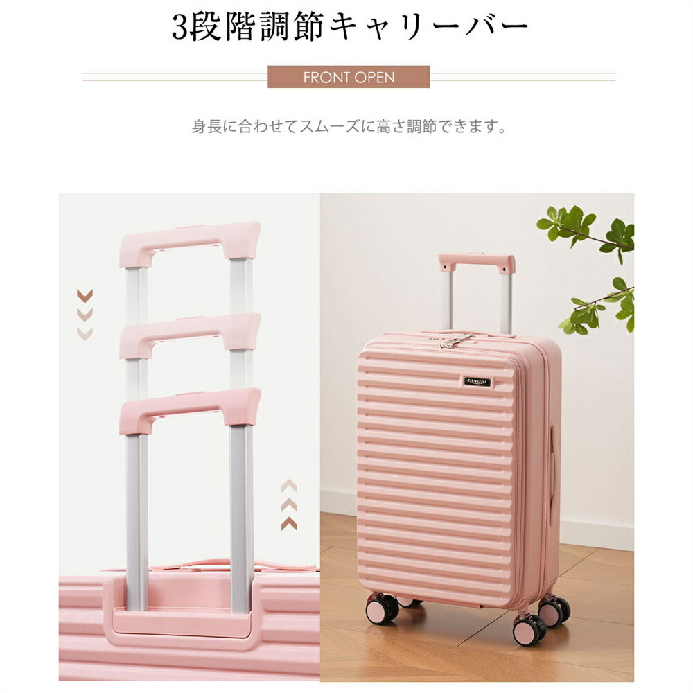 スーツケース Sサイズ S MS フロントオープン 機内持ち込み キャリーバッグ USBポート付き ドリンクホルダー付き かわいい ストッパー付き ダブルキャスター 軽量 静か 頑丈 海外 1日 女性