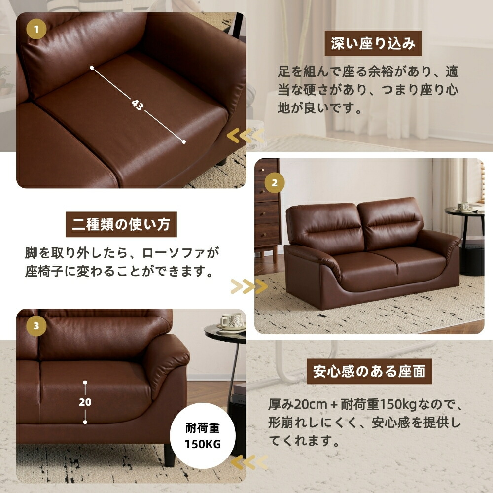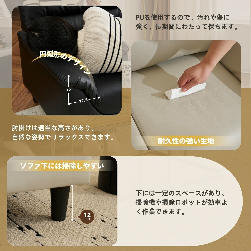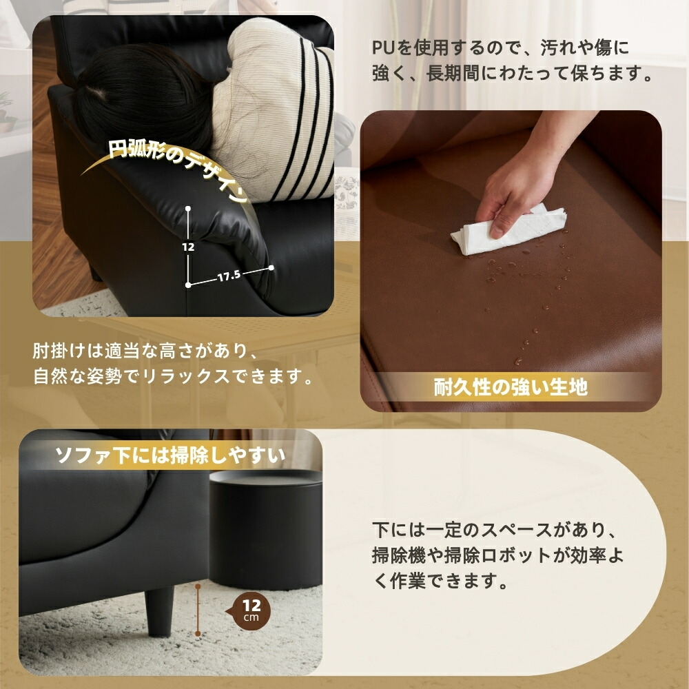 ソファ 二人掛け カウチ PUレザー パールグレー ブラック ブラウン