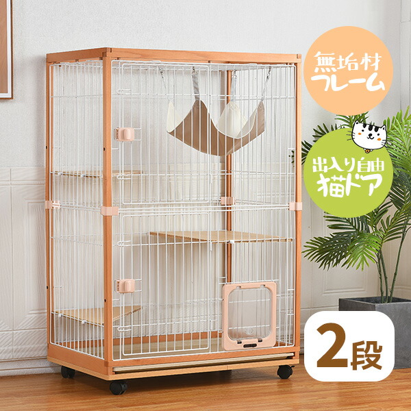 猫 ケージ 2段 木製フレーム キャッ ペット ペットグッズ 通販