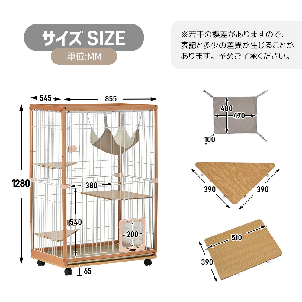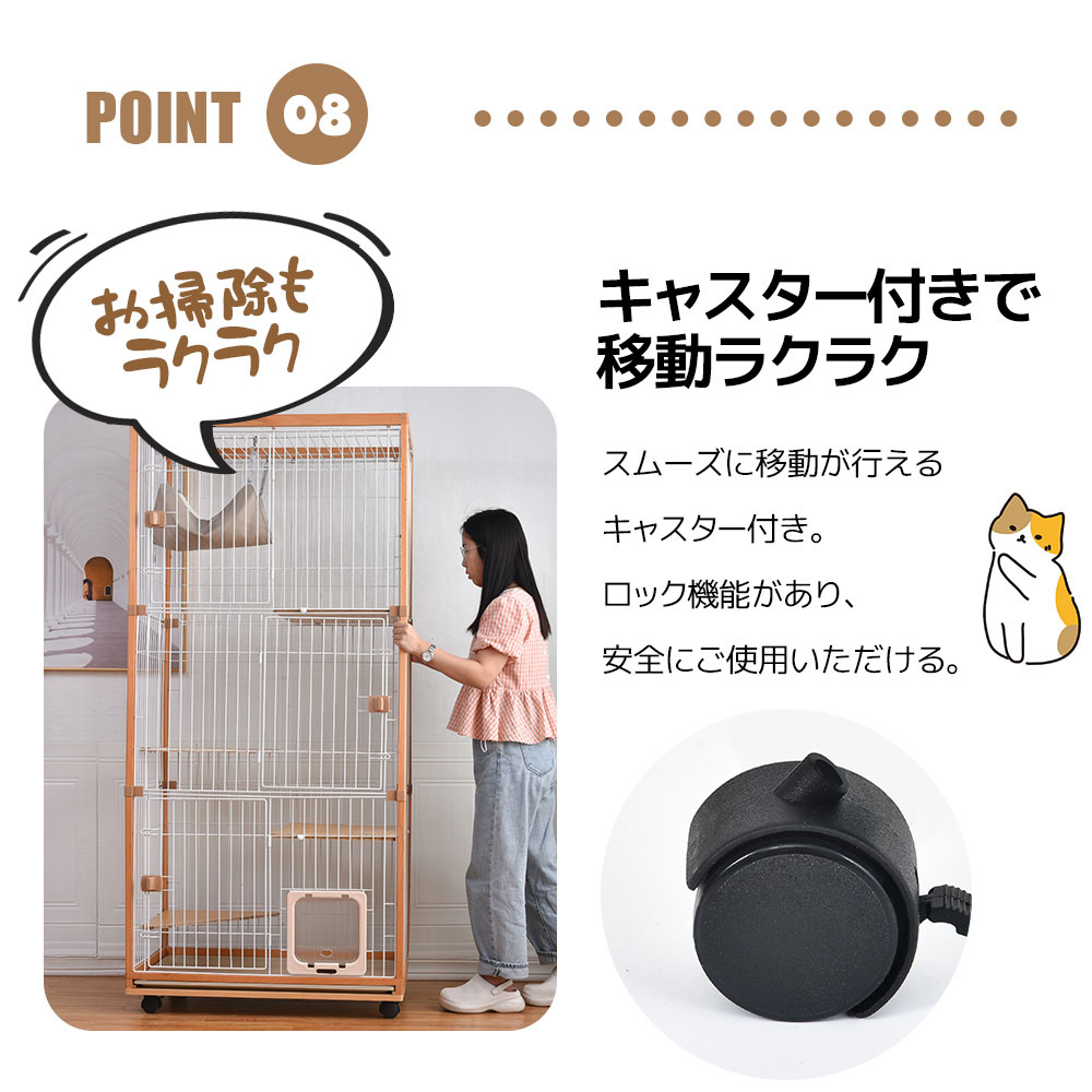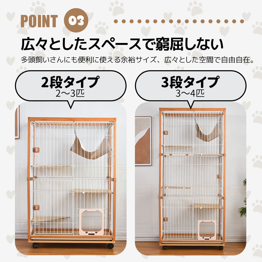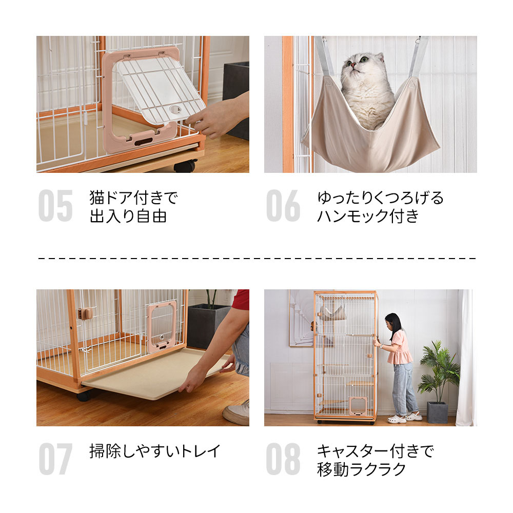 猫 ケージ 2段 木製フレーム キャットハウス ネコ ハウス 多段 留守番 保護 脱走防止 多頭飼い 多頭 スチール ハンモック付き 猫ドア付き キャスター付き 大型 猫ゲージ おしゃれ 広々