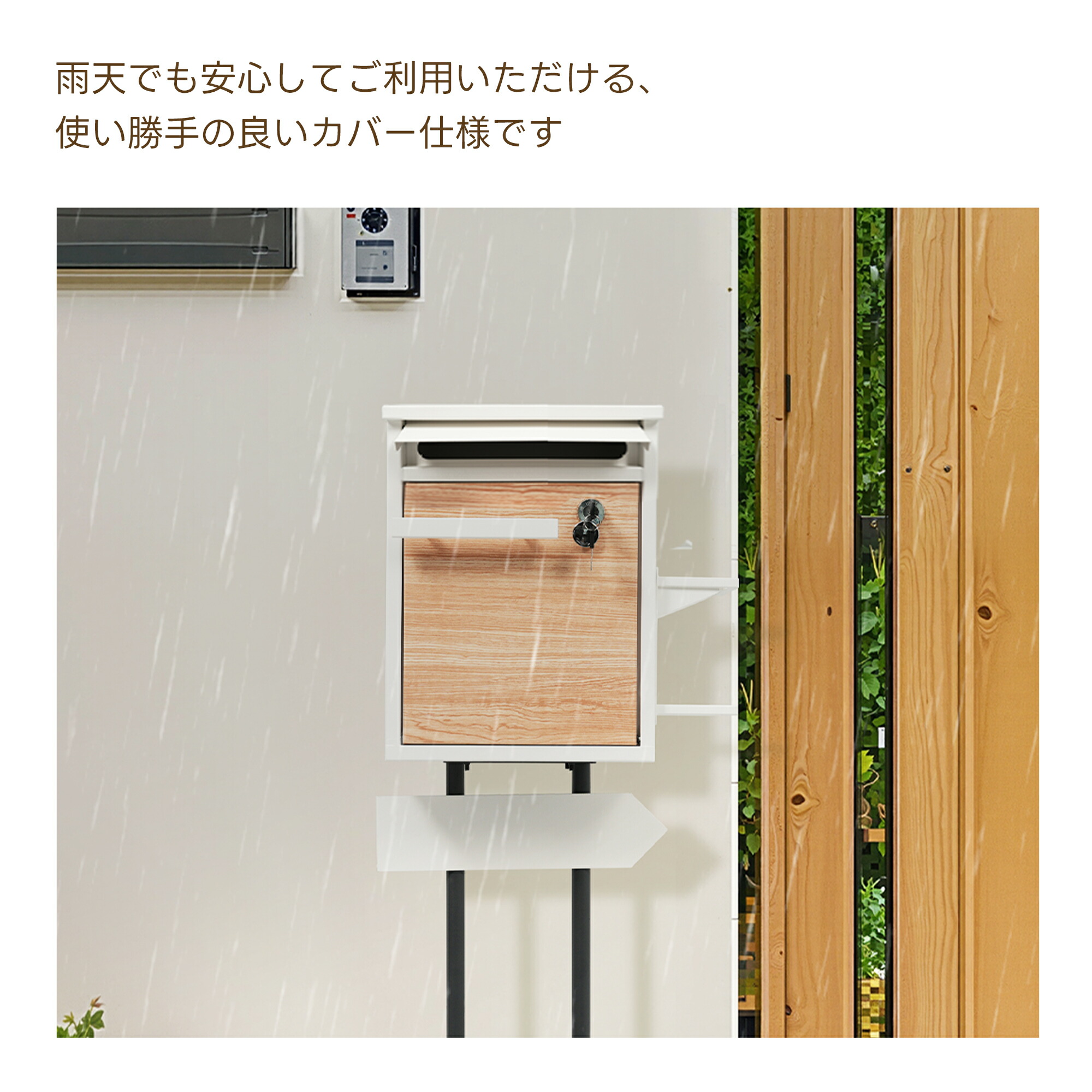 宅配ボックス 置き型 スタンド 投函口 ホワイト+木目 ダークグレー+木目