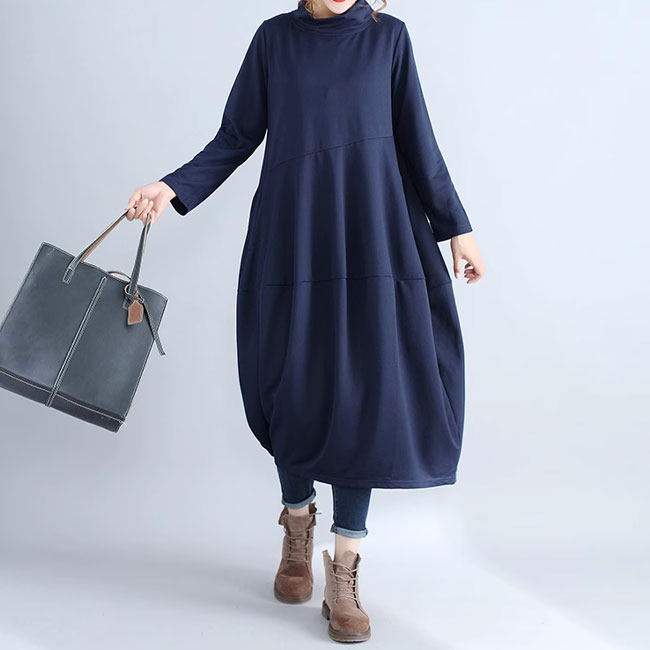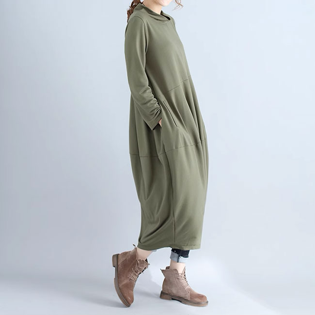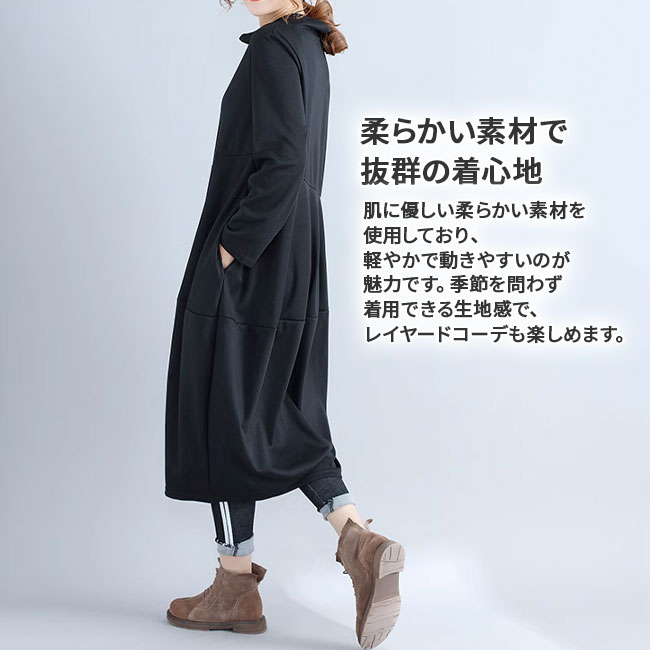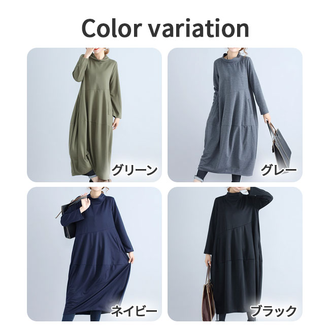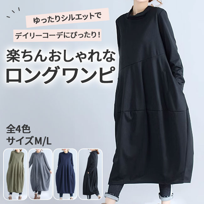 ワンピース コクーンワンピース ミモレ レディースファッション 続々登場 ブラック ネイビー グリーン グレー M L