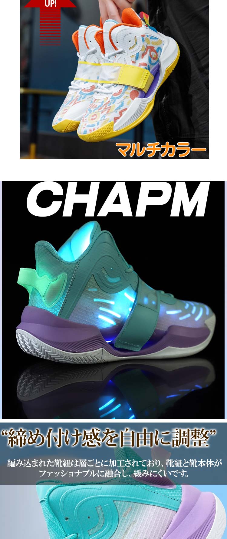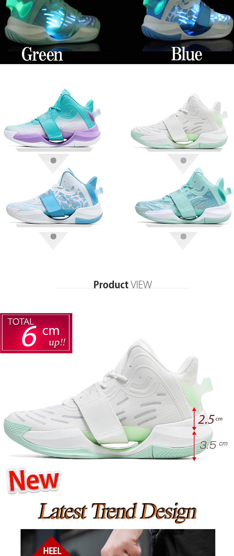 靴底は優れた耐摩耗性と滑りにくい素材を採用、バスケットボールコートでの試合に勝つのに役立ちます。