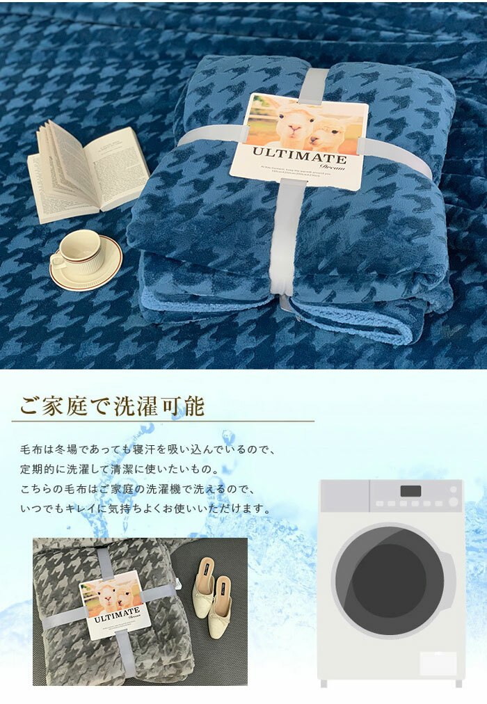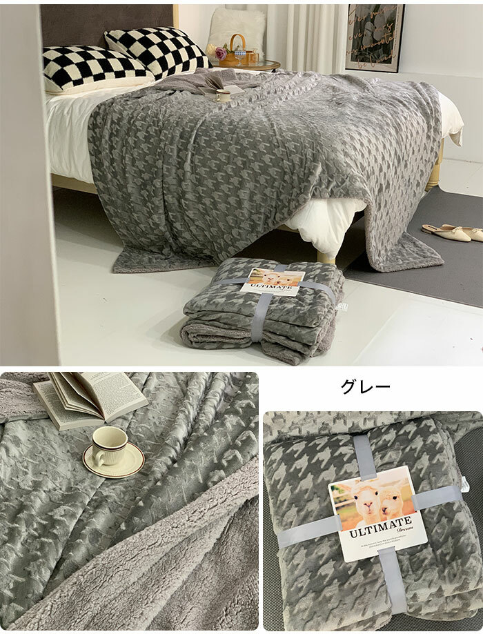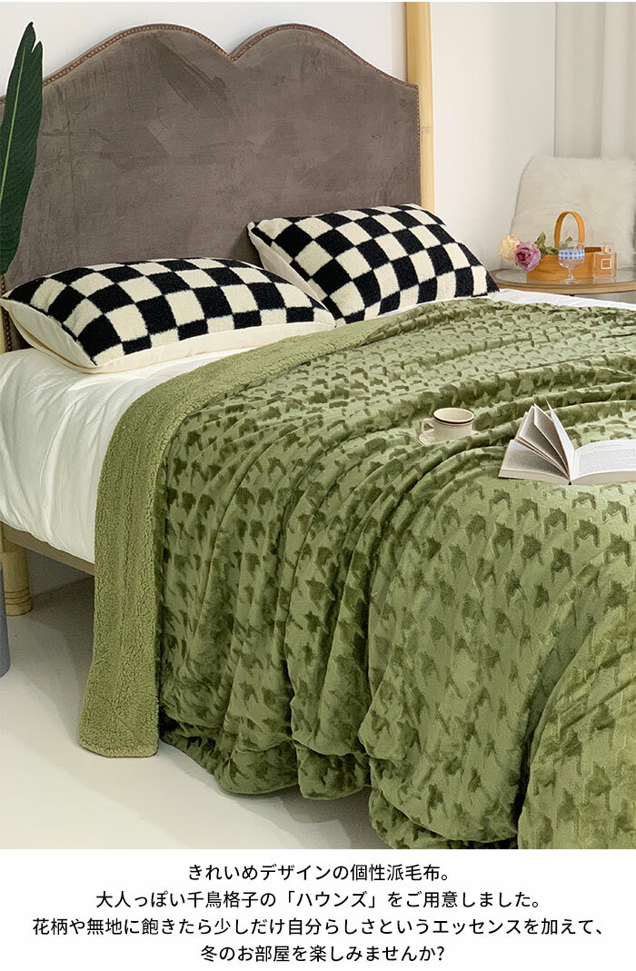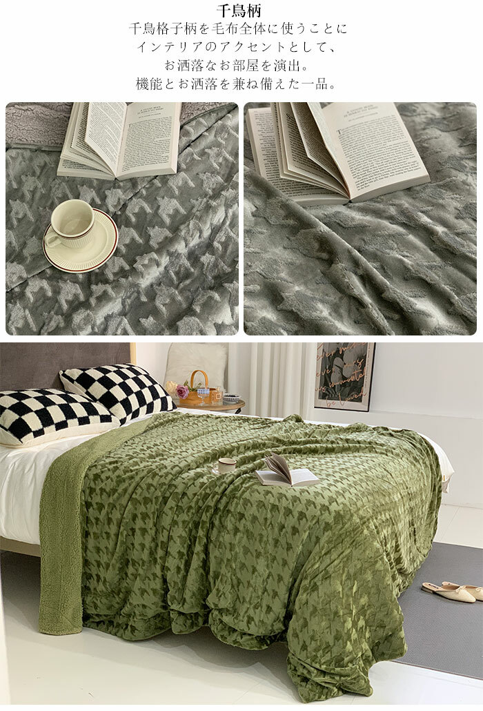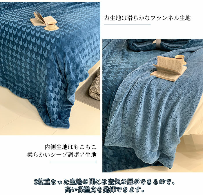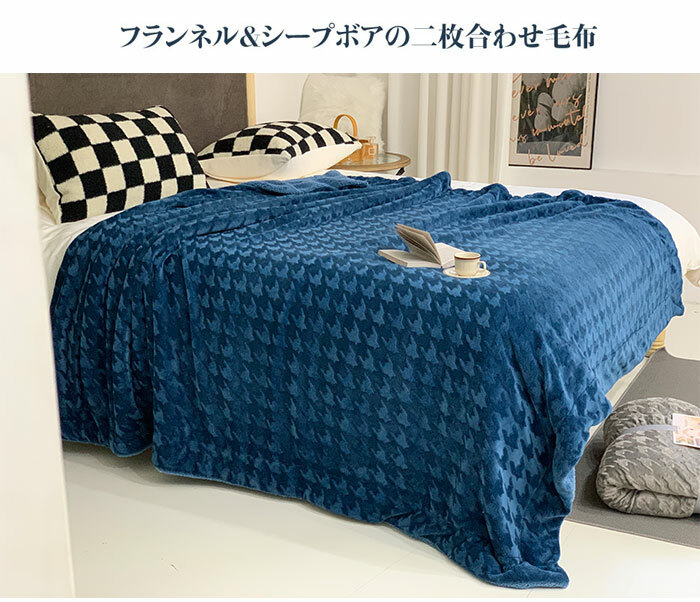 2枚合わせ 毛布 ブランケット 裏ボア フランネル もこもこ クイーン 毛布 ふわふわ 掛け毛布 大判 おしゃれ 千鳥柄 シープ調 ボア マイクロファイバーあったか 丸洗い 洗える 冬 暖かい 発熱 静電気防止 抗菌 防臭 インテリア 北欧 秋冬用 200x230cm