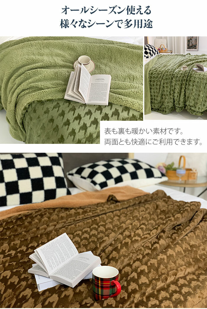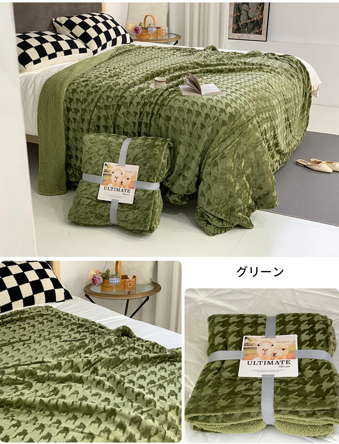 2枚合わせ 毛布 ブランケット 裏ボア 寝具 毛布 ブランケット 早い者勝ち グリーン コーヒー ブルー