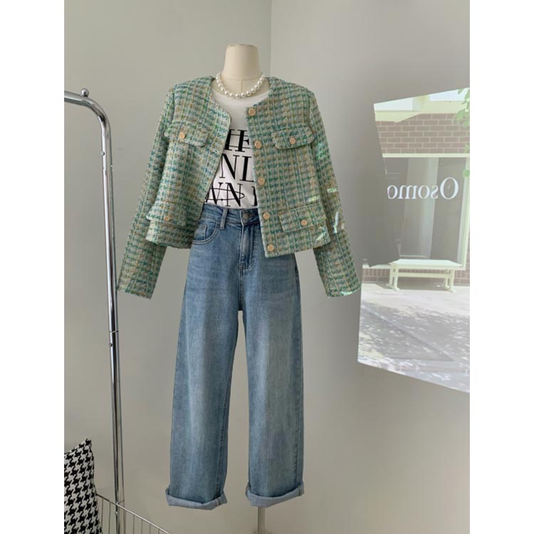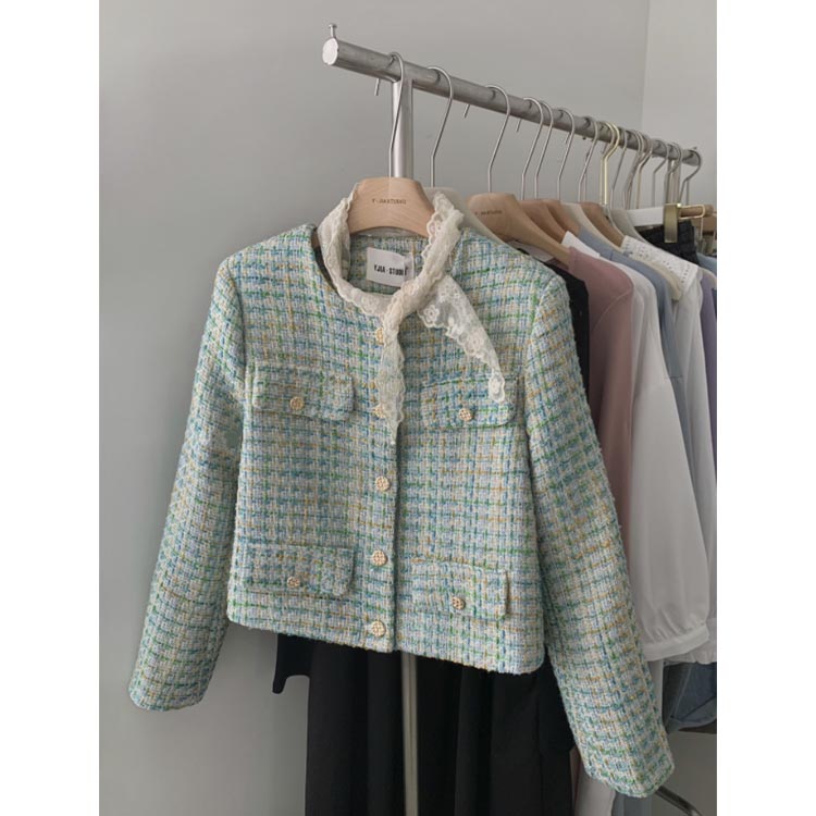ツイードジャケット ノーカラー グリー コート ジャケット 早い者勝ち M L XL