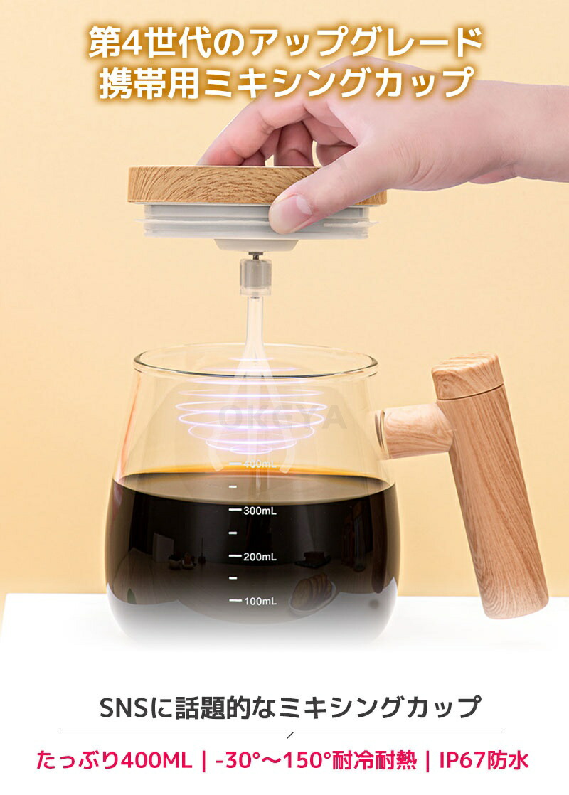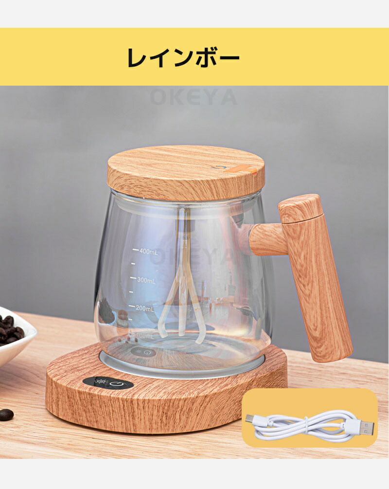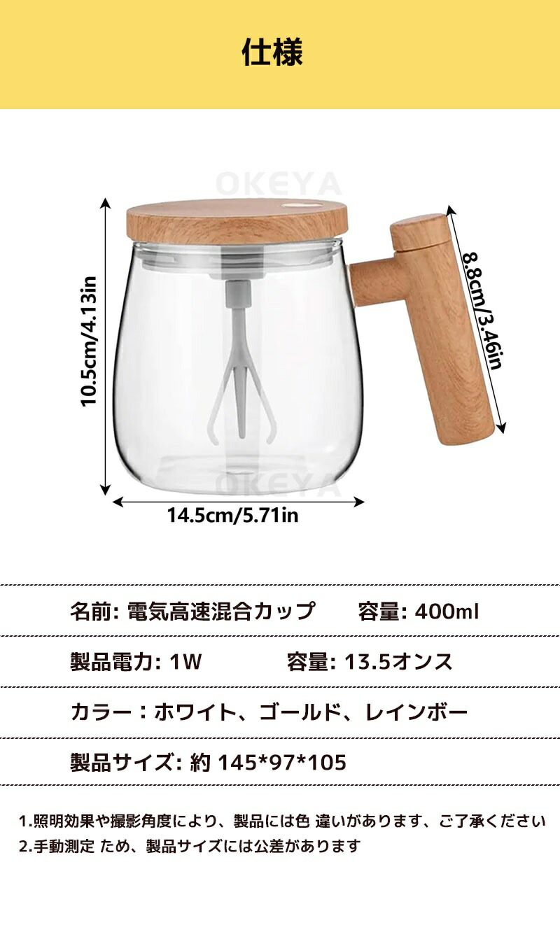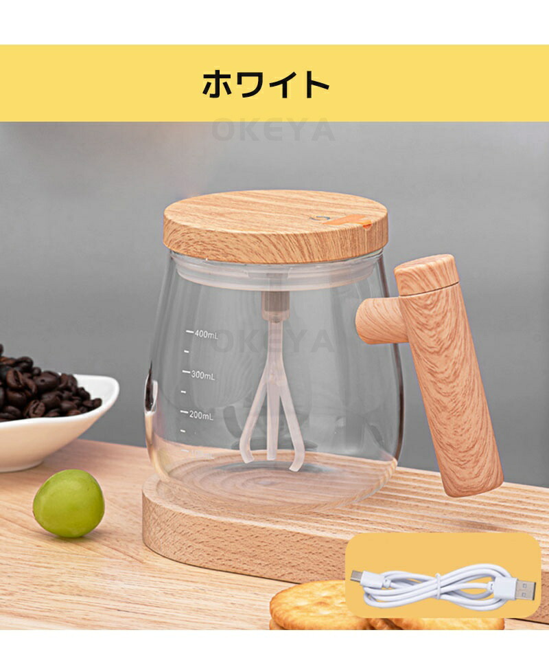 自動ミキサーカップ 400ML 自動攪 ホワイト レインボー ゴールド 電池式 充電式