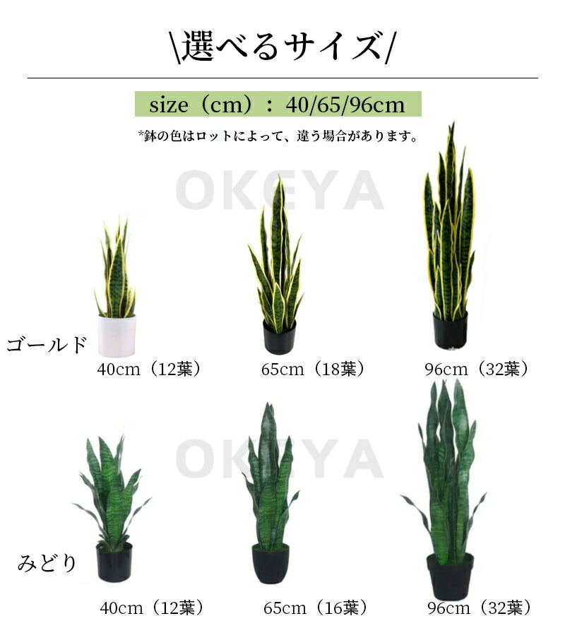 サンスベリア フェイクグリーン 観葉植 40cm 65cm 96cm ゴールド みどり