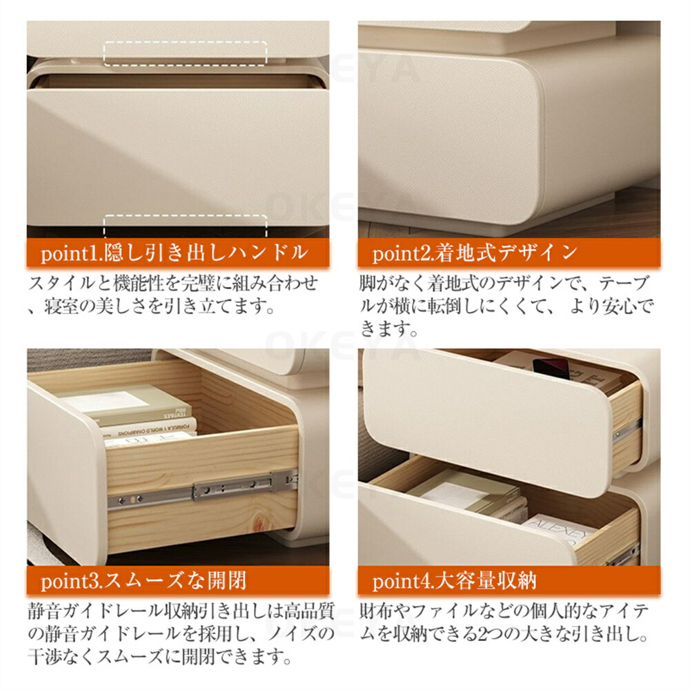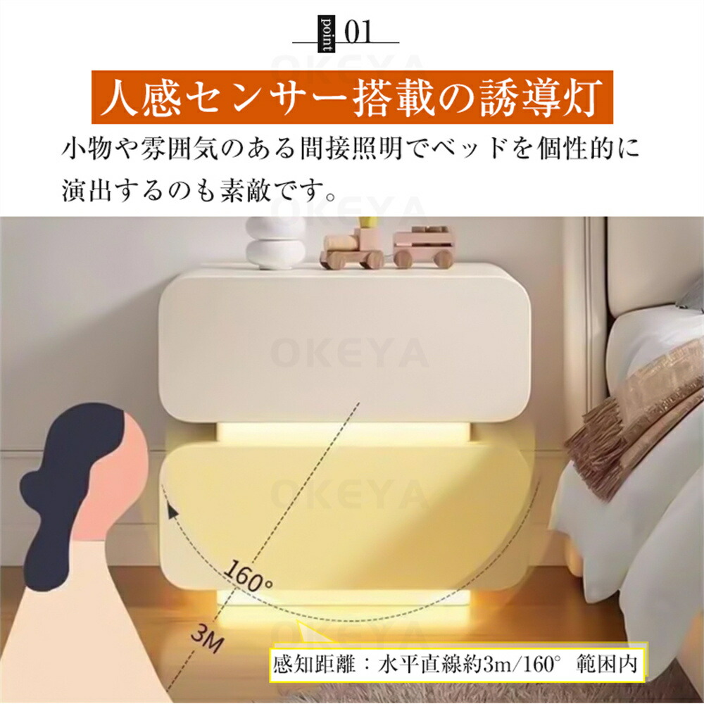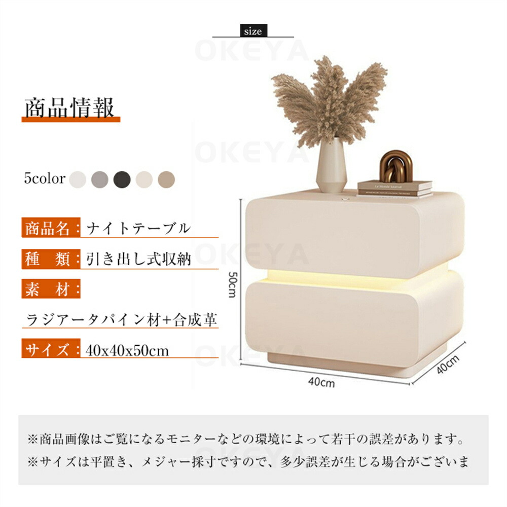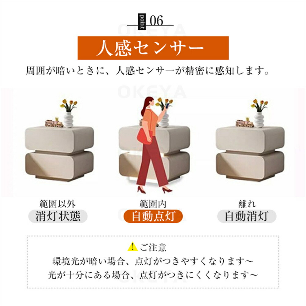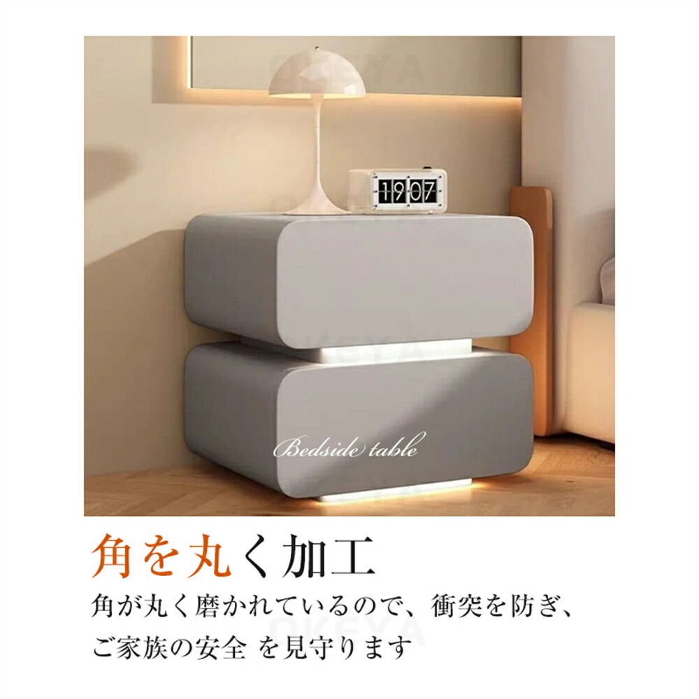 ナイトテーブル サイドテーブル 人感セ ホワイト ライトグレー ブラック ベージュ カーキ ライトなし ライト付き