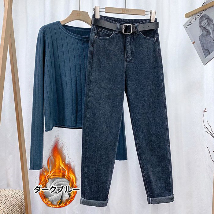裏起毛 デニムパンツ レディース ジー ボトムス パンツ 新登場! ライトブルー デニムブルー グレー ダークブルー ブラック M L XL 2XL