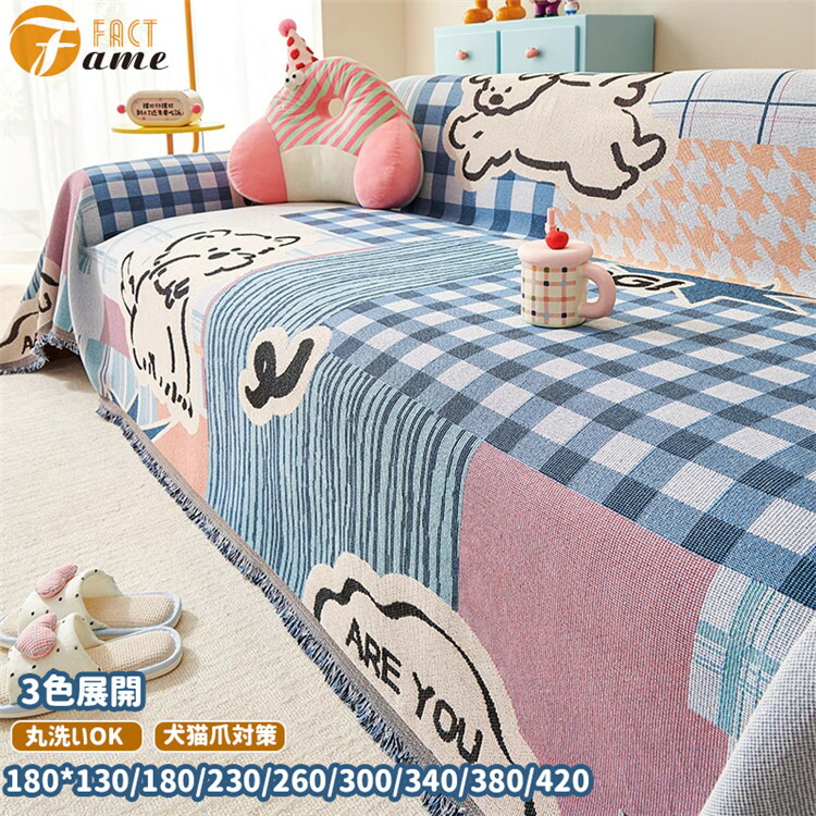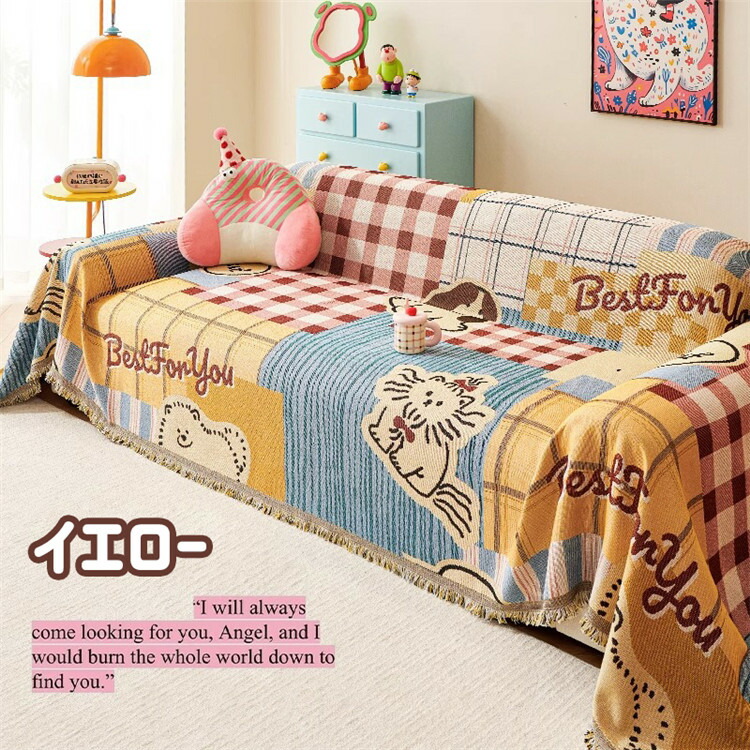 チェック柄 ins ソファカバー 四季 イエロー ブラウン ブルー 180*130cm 180*180cm 180*230cm 180*260cm 180*300cm 180*340cm 180*380cm 180*420cm