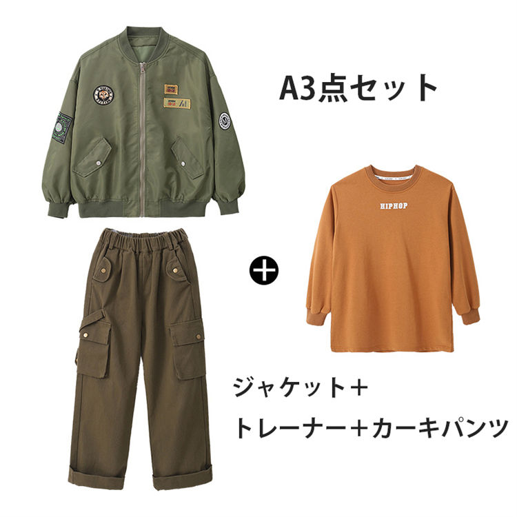 スタジャン 子供服 ヒップホップ セッ キッズ スーツ カジュアルセットアップ カジュアルパンツセット 早い者勝ち ジャケットのみ 迷彩パンツのみ カーキパンツのみ トレーナーのみ A2点セット B2点セット A3点セット B3点セット 110cm 120cm 130cm 140cm 150cm 160cm 170cm 180cm