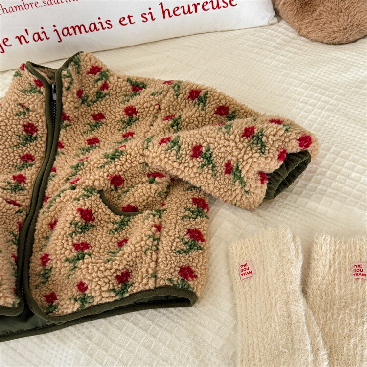 P5倍大感謝祭韓国子供服 アウター ボ キッズ ベビー マタニティ 新登場! ベージュ コーヒー色 80 90 100 110 120 130