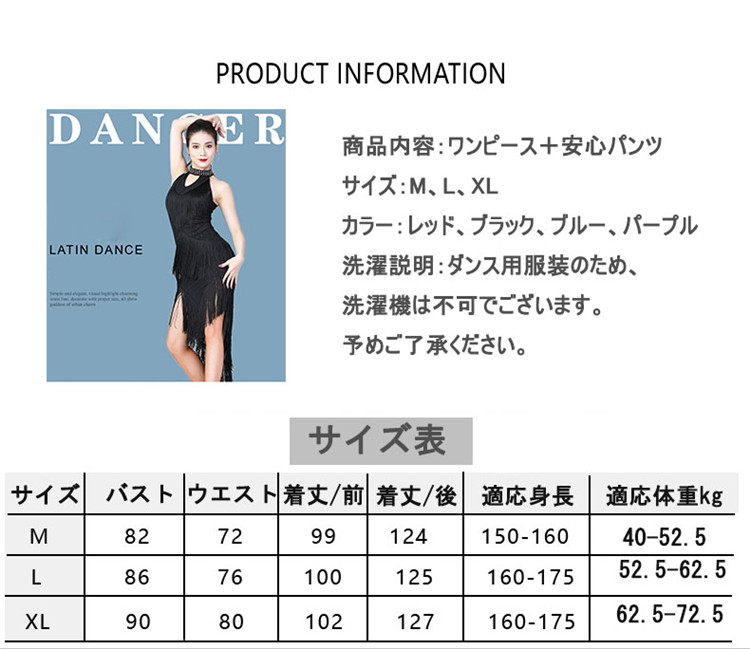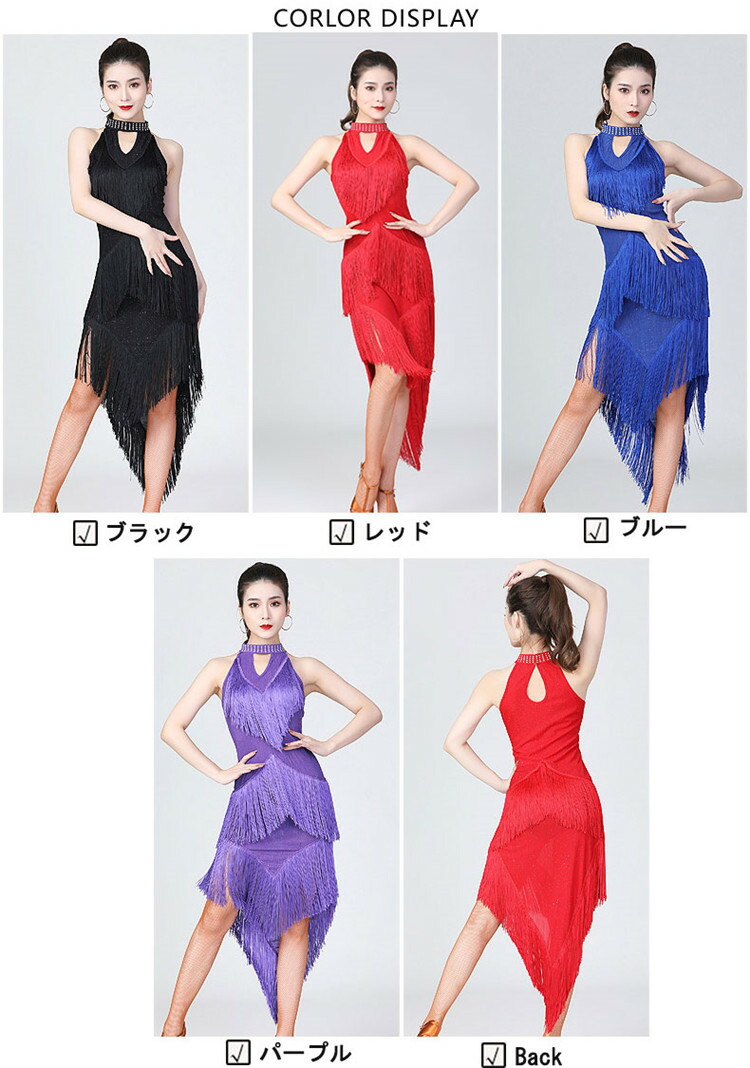 ラテン ダンス衣装 ラテンドレス 4色 スポーツ アウトドア 特集 ブラック レッド ブルー パープル M L XL