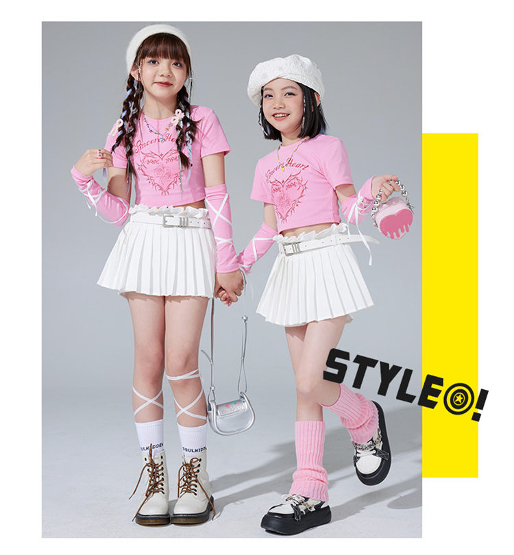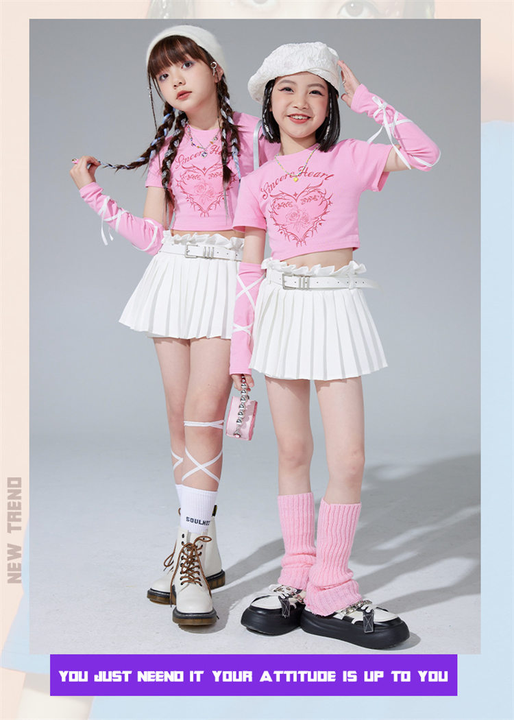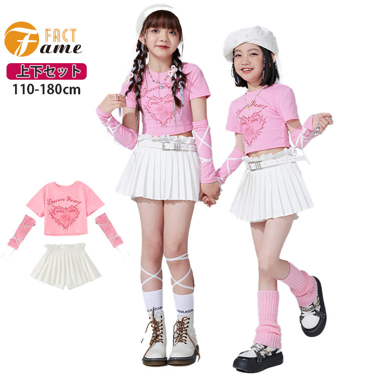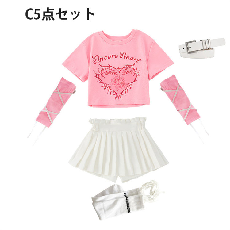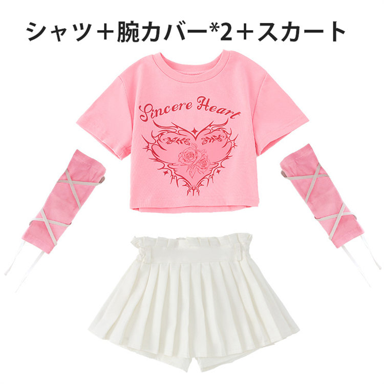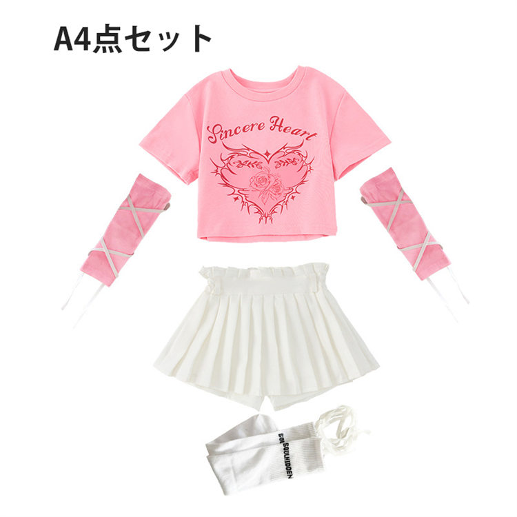 子供服 ピンク ダンス衣装 キッズ 女 キッズ スーツ カジュアルセットアップ カジュアルスカートセット 続々入荷中 シャツ+スカート+腕カバー*2 A4点セット B4点セット C5点セット D5点セット 110 120 130 140 150 160 170 180