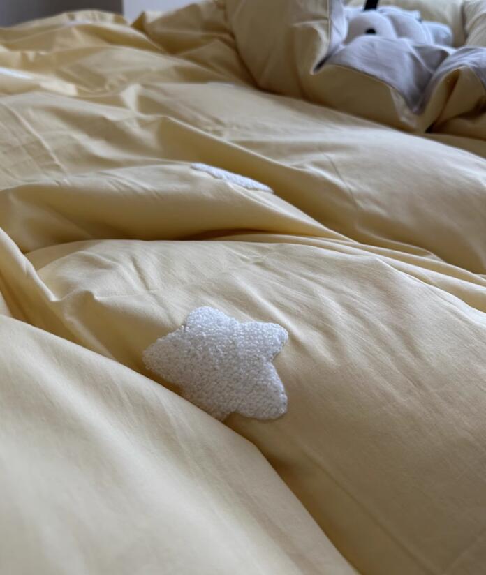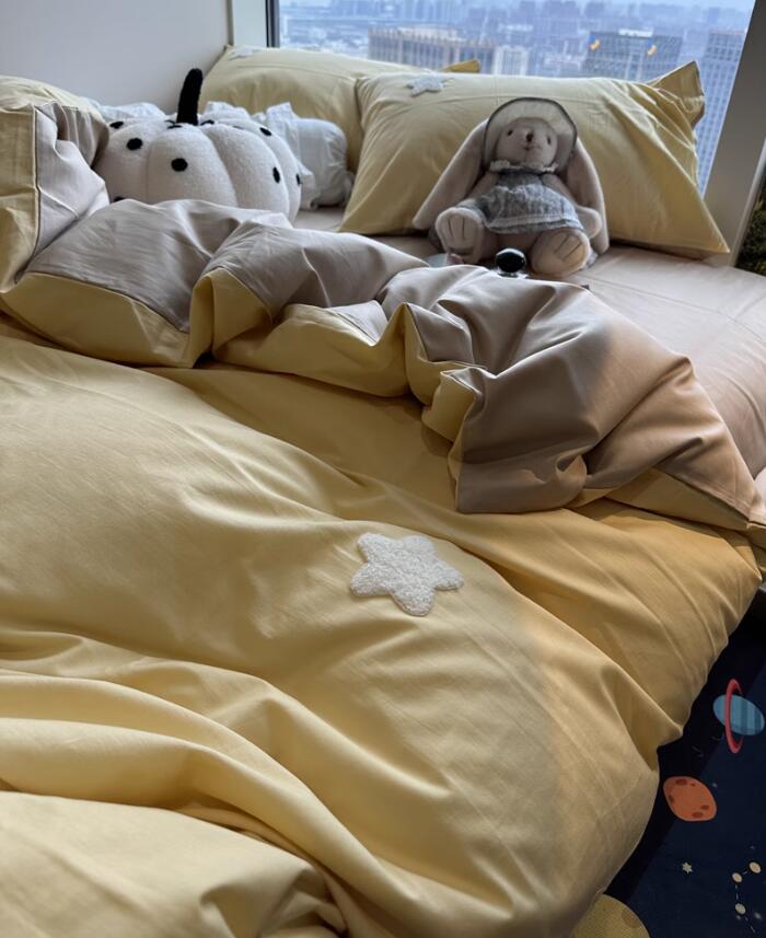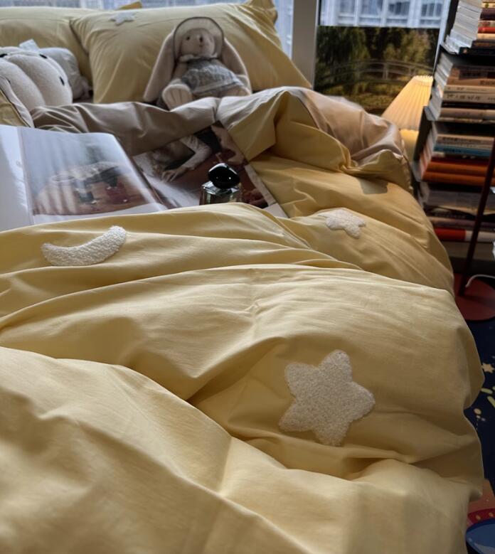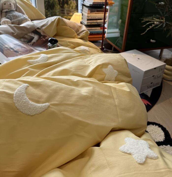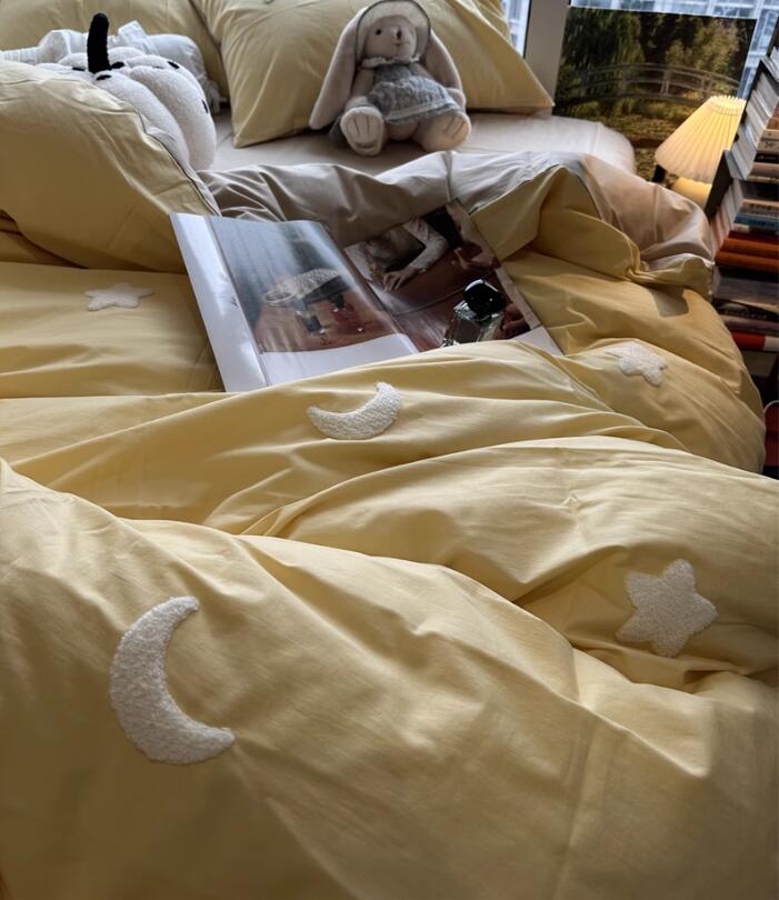 布団カバーセット 可愛い星月 黄色 洗 インテリア 寝具 収納 人気 シングル(3点セット) フラットシーツタイプ1.5m フラットシーツタイプ2.0m ボックスシーツタイプ1.5m ボックスシーツタイプ1.8m