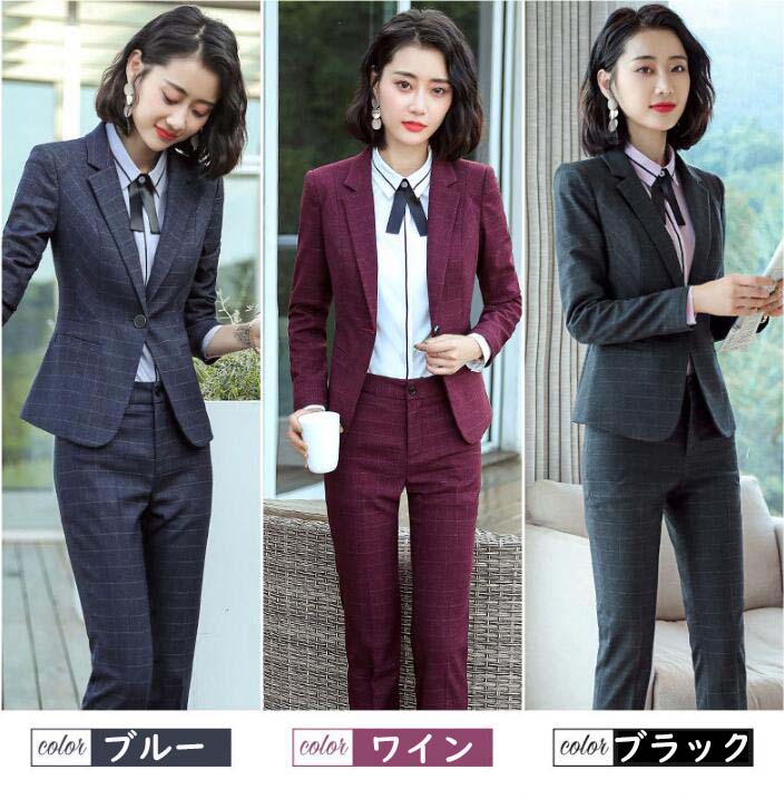 レディース パンツスーツ スーツ 3点 スーツ セットアップ 3 4点セット 豊富な品揃え S M L XL 2XL 3XL 4XL ブルー ブラック ワイン