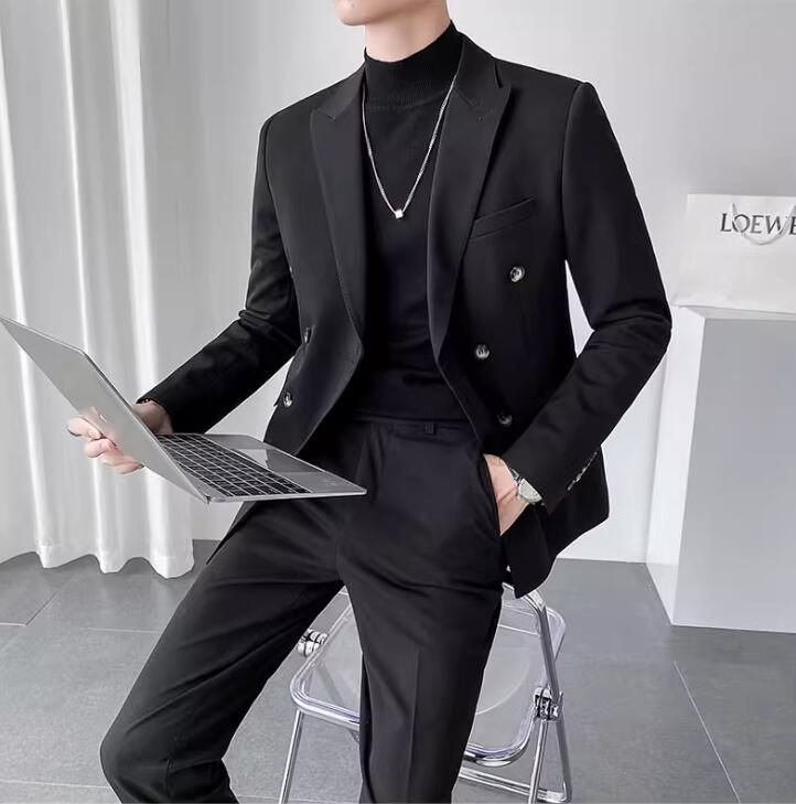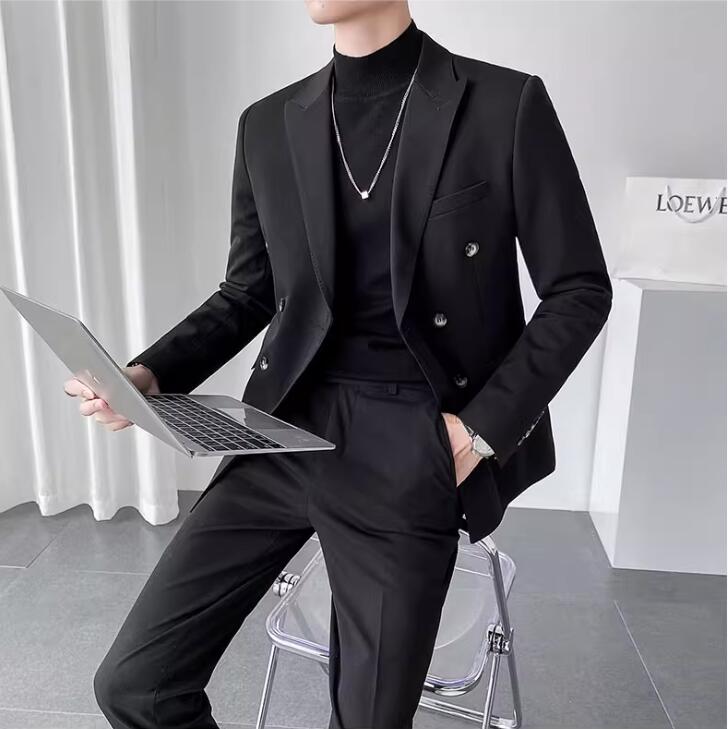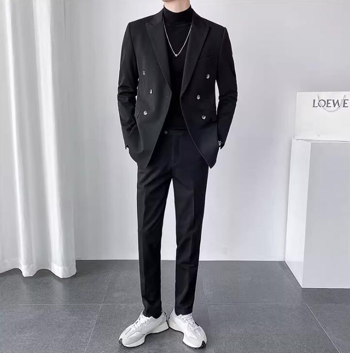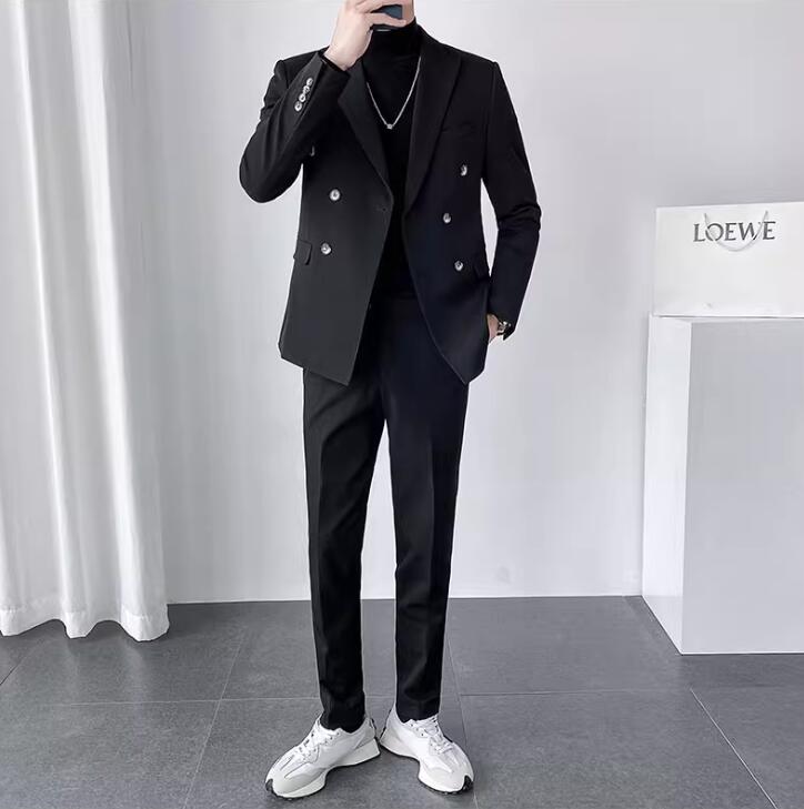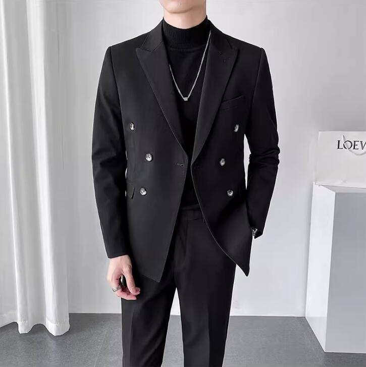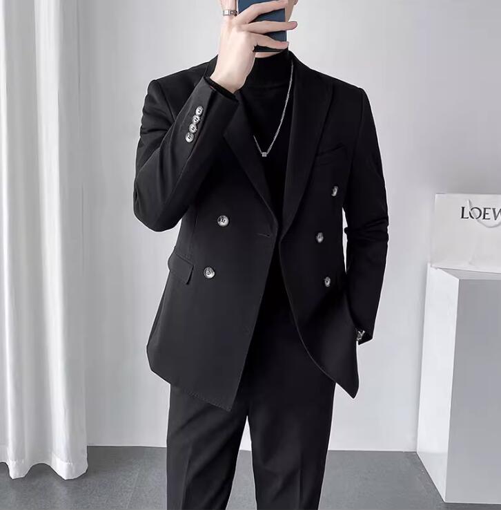 メンズ スーツ 2ピーススーツ ダブルスーツ 黒 スタイリッシュスーツ 2点セット ジャケット+ ズボン セットアップ 上下セット 紳士服 通勤 結婚式 花婿 リクルートスーツ タキシード フ 前撮り