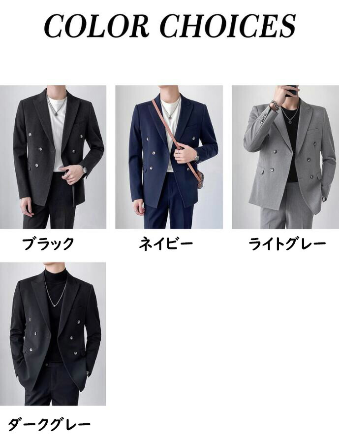 メンズ スーツ 2ピーススーツ ダブル スーツ セットアップ スーツ 人気 M L XL 2XL 3XL ブラック ネイビー ライトグレー ダークグレー