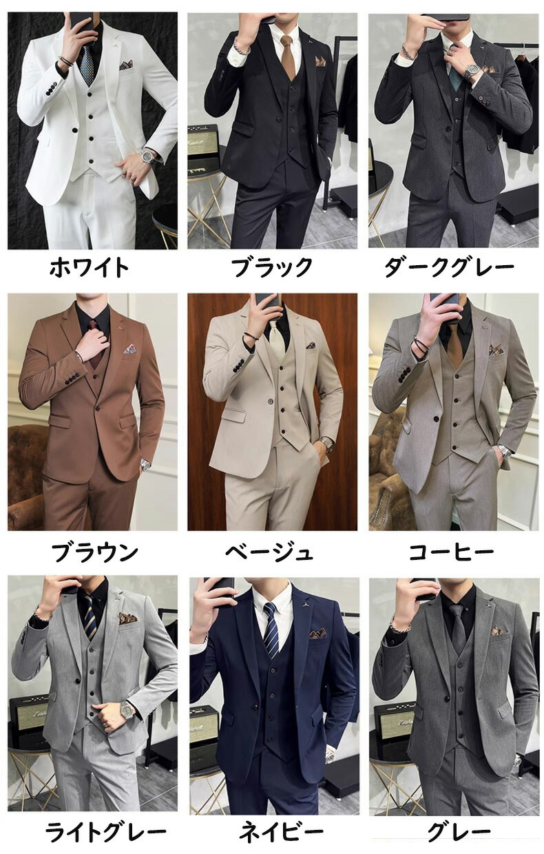 スリーピース メンズスーツ タキシード メンズファッション 通販 S M L XL 2XL 3XL 4XL 5XL 6XL 7XL ホワイト ブラック ダークグレー ブラウン ベージュ コーヒー ライトグレー ネイビー グレー