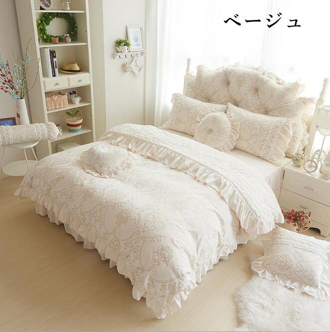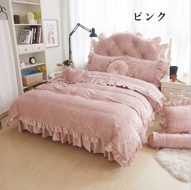 布団カバー3点セット 宮廷風 ベッドス インテリア 寝具 収納 特集 ベージュ ピンク ホワイト パープル グリーン レッド