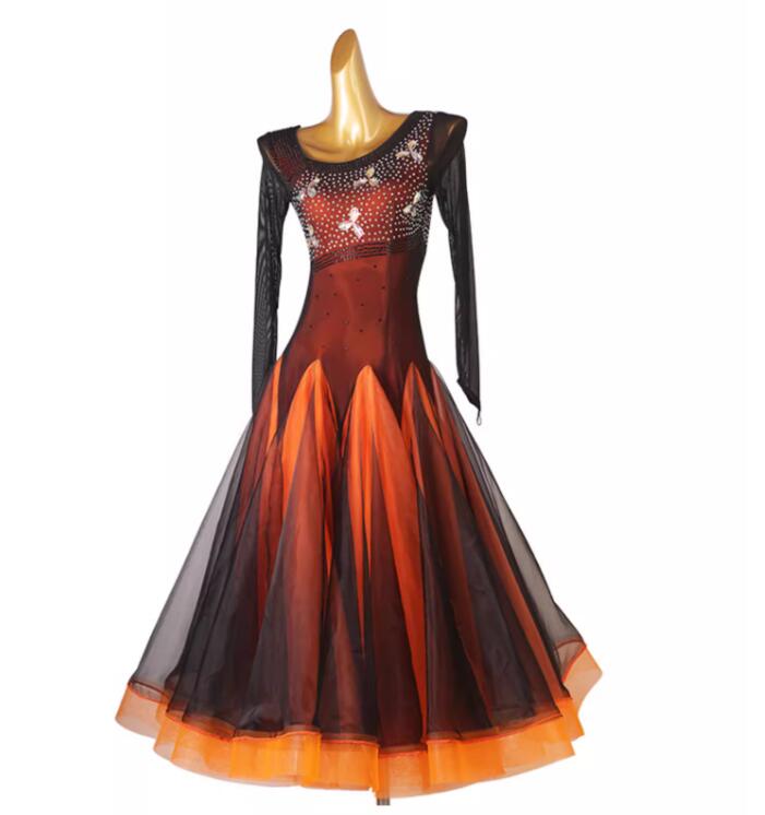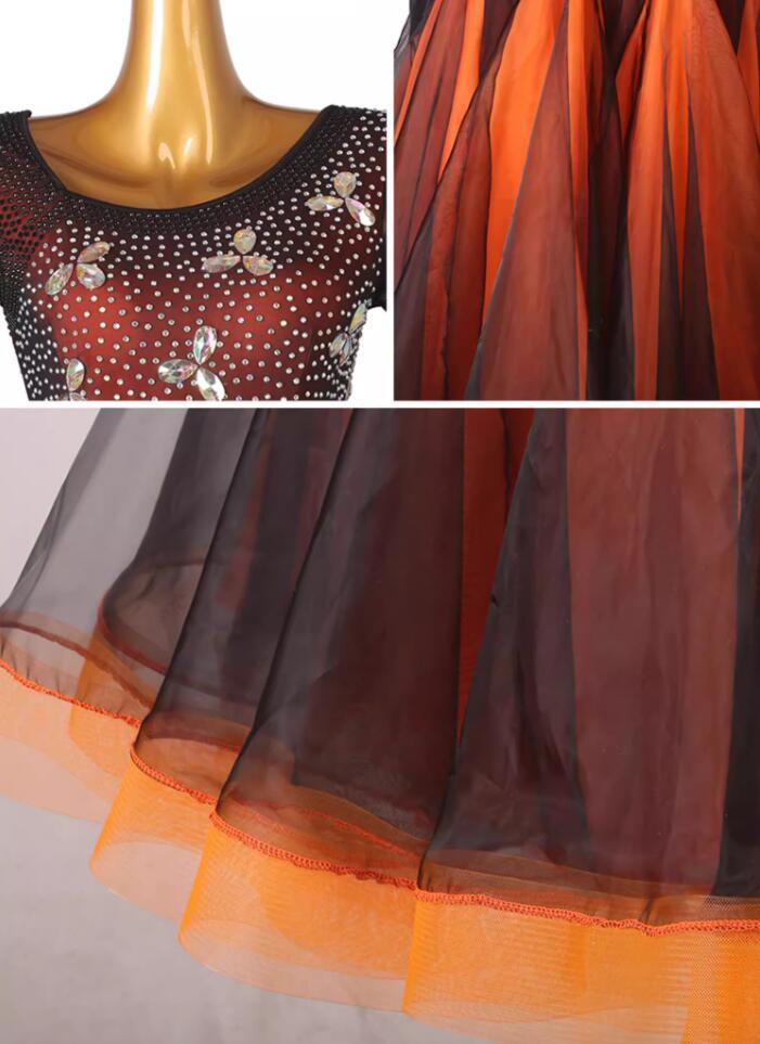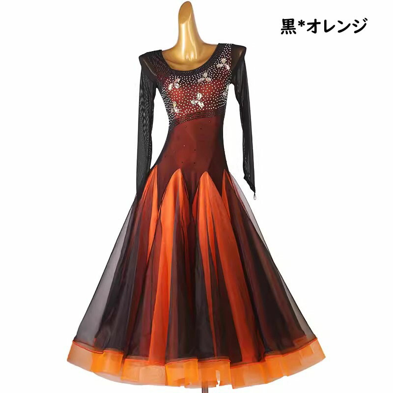 社交ダンスドレス スタンダードドレス スポーツ アウトドア 人気 S M L XL XXL 黒*オレンジ 黒*ローズ 黒*赤