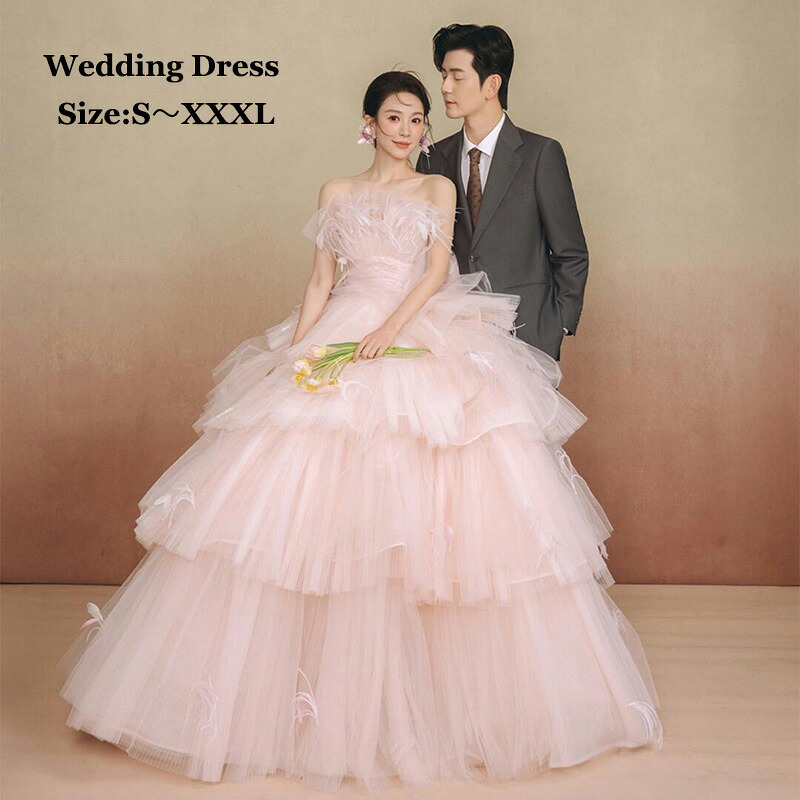 ウェディングドレス お姫様ドレス ピン ウエディングドレス 続々入荷中 S M L XL XXL XXXL