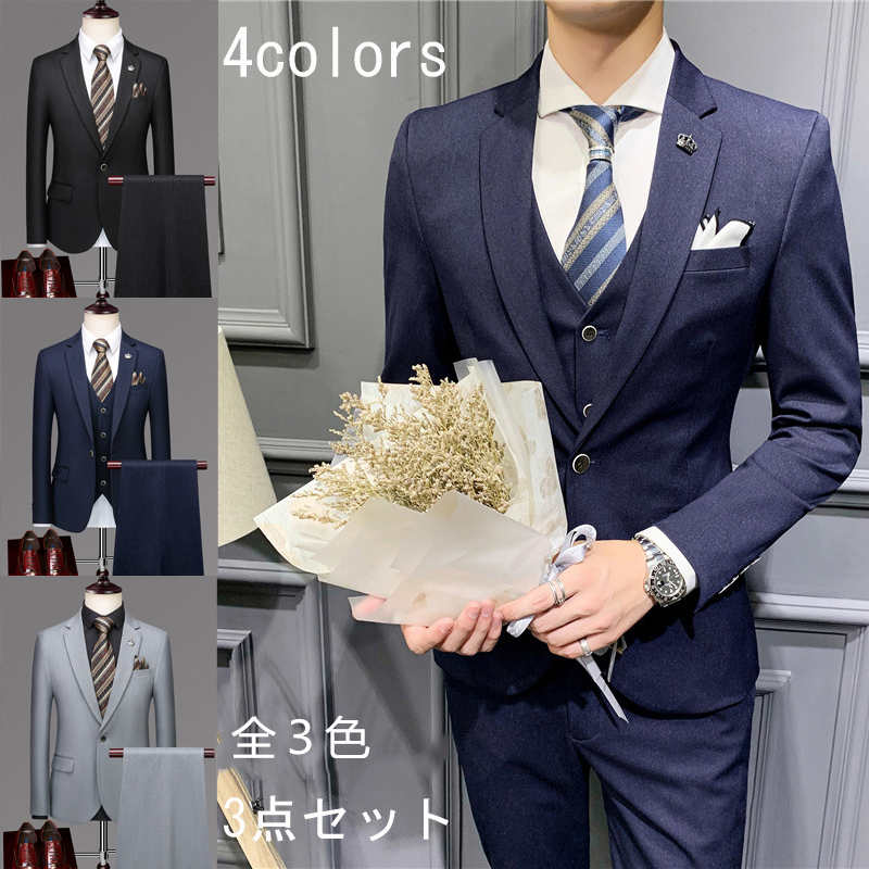 メンズスーツ ビジネススーツ 3ピーススーツ メンズ スーツ セットアップ 3点セット 長袖ジャケット+パンツ+ベスト 紳士服 レギュラー カジュアルスーツ セレモニー フォーマル 礼服 パ ビジネス